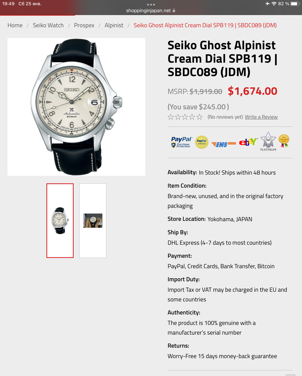 Цена то чёрт с ней, ну в два раза выше, да. Но люди пафосную швейцарию покупают за оверпрайз, а здесь легенда, которая прям по мне. Проблема в том, что это интернет-магазин, как я понял. У меня даже кэшом эта сумма есть. Но вот картой русского банка оплатить покупку я наверное не смогу. Ну и не доверяю я интеренет-магазинам. Брал недавно телефон, до сих пор кажется, что где-то меня обманули с ним, хотя спрашивал у знакомых и перечитал кучу отзывов про продавца...