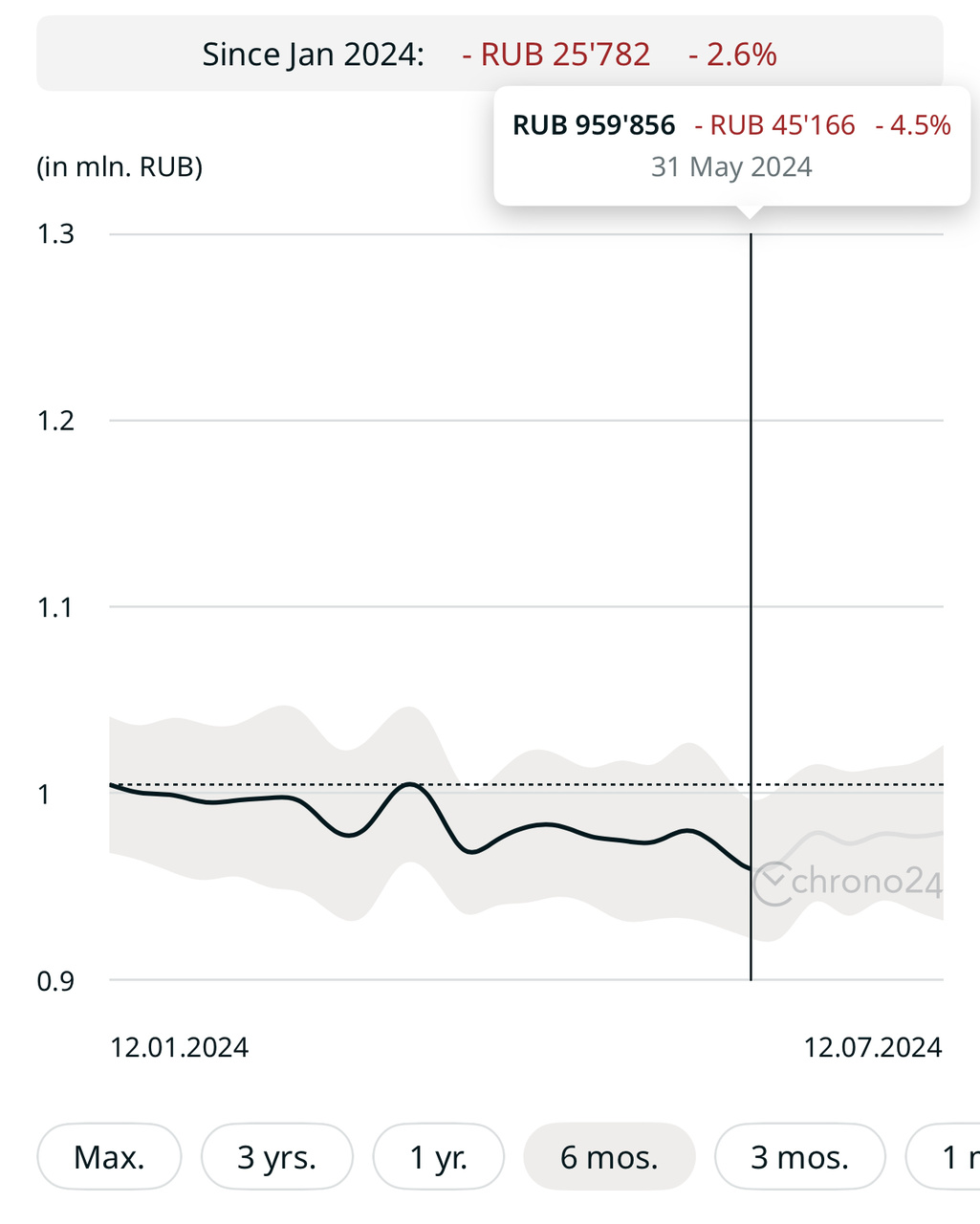 Буду в Москве со следующей недели. Предпочитаю личную продажу за рубли, но могу отправить курьером после полной оплаты. Порядочность гарантирую. Проверки только в приличных местах. Лучшая цена в России, да и ниже Хроно24. Пишите - договоримся, Павел