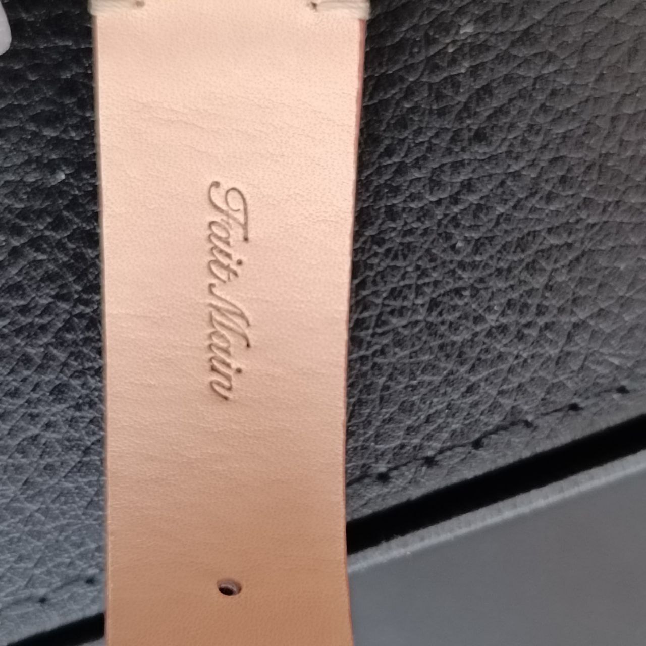 Ремешок: темно-коричневый из телячьей кожи с кремовой строчкой.