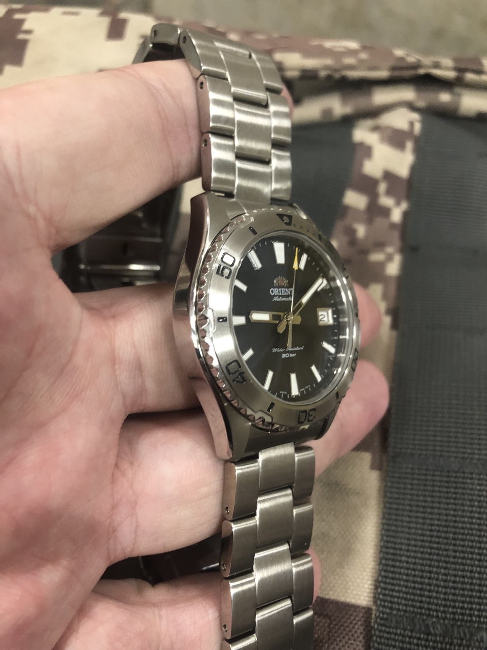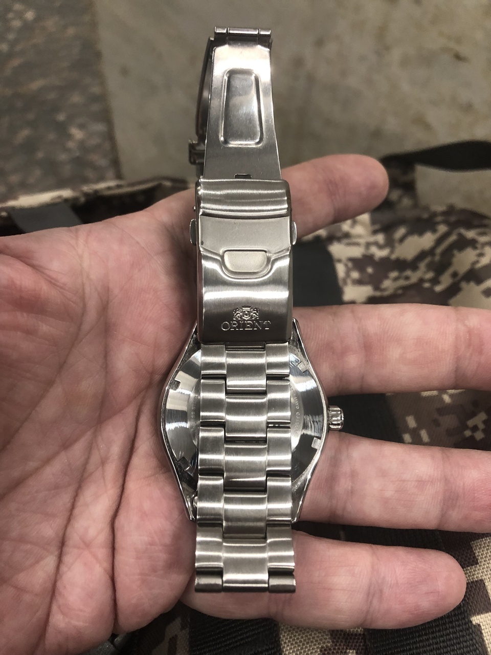 Браслет шириной 20 мм,как и на некоторых других моделях Ориент литой,за исключением крайних штамповок и застежки.Не скажу,что гремит как погремушка,как по мне то пойдет.