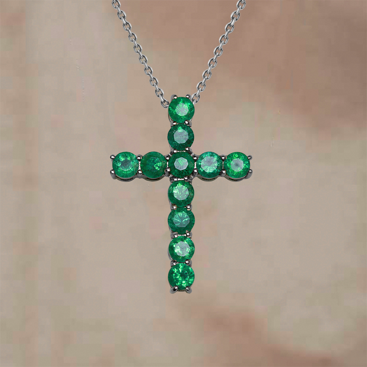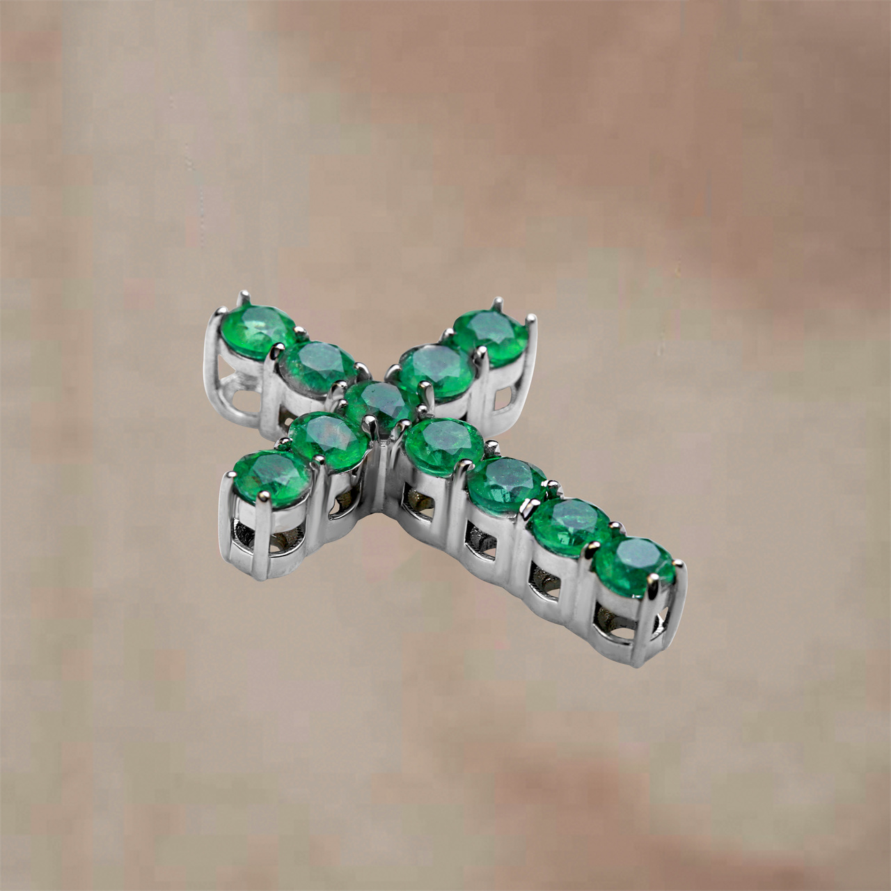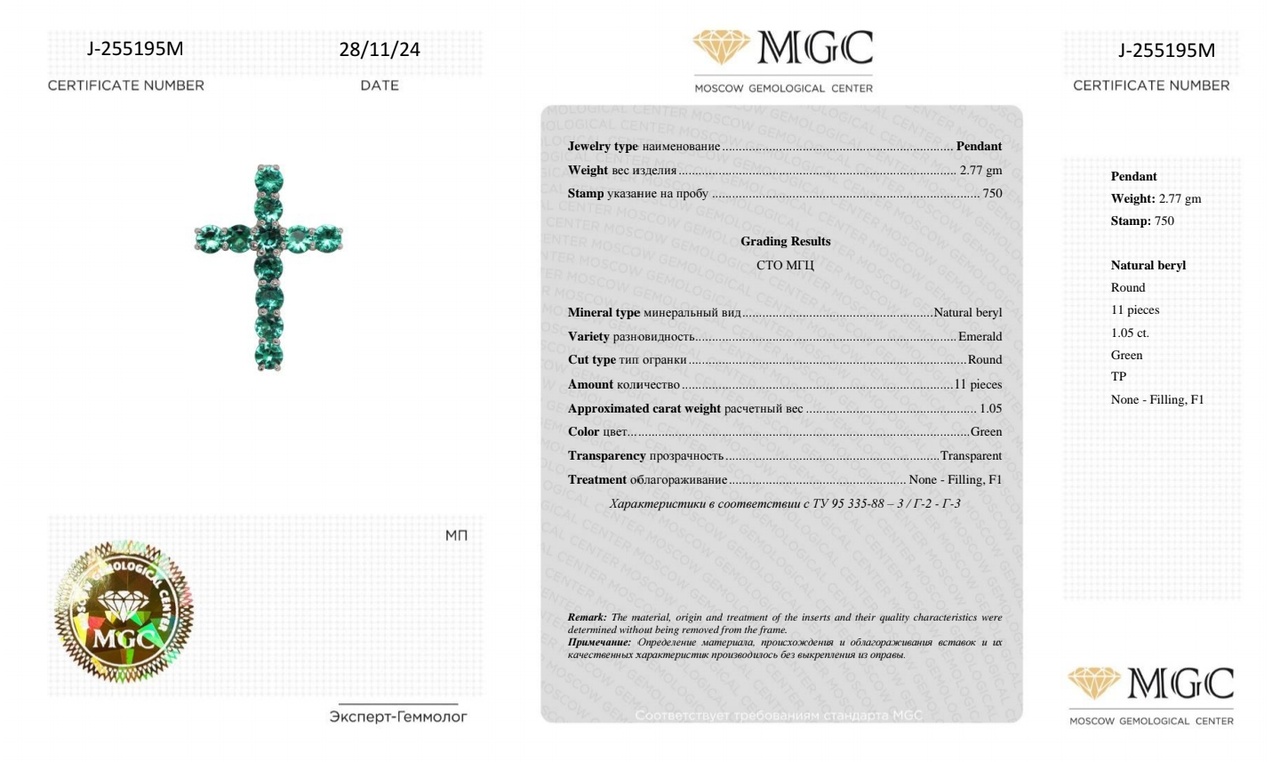 Подвеска-крест из белого золота с изумрудами 1,05 карат (сертификат МГЦ)