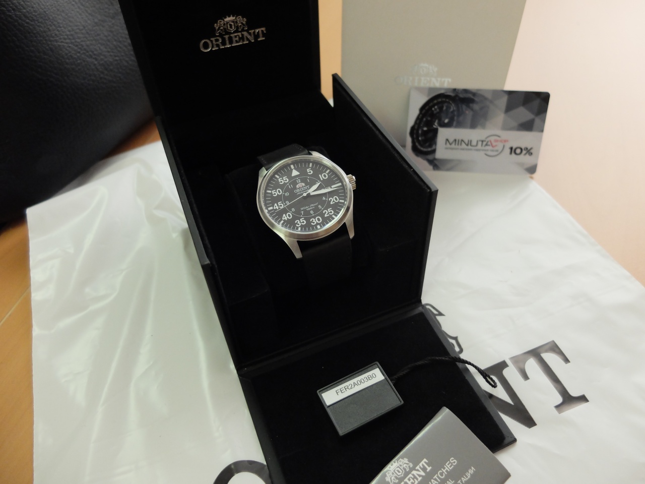 Цены показались совсем низкими - это просто праздник какой-то! Даже насторожило... Почитал отзывы... вроде как в плюсах, но магаз нераскрученный, мало рекламы и отзывов. Решил попробовать, нажал кнопку заказа и после приятного общения с сотрудником магазина Михаилом рискнул и заказал Orient FER2A003B (Пилоты с черным циферблатом). Практически сразу дали трек-номер. Оплатил после получения посылки. Доставка бесплатная, СДЭК, и дошло за 5 дней (Из Петербурга на Урал) В-общем, часы получены и я в восторге! Упакована посылка на отлично! Экземпляр часов не витринный (!), абсолютно новые, оригинальные Ориенты, с бирками, стоимость которых в других магазинах превышает в разы. В комплекте: часы в оригинальной благородной "ориентовской шкатулке", документы, подтверждающие покупку, с оригинальными печатями, действующими адресами и контактными телефонами магазина, гарантийный талон на часы, а так же приятной бонус в виде дополнительной скидочной карты для следующей покупки!
