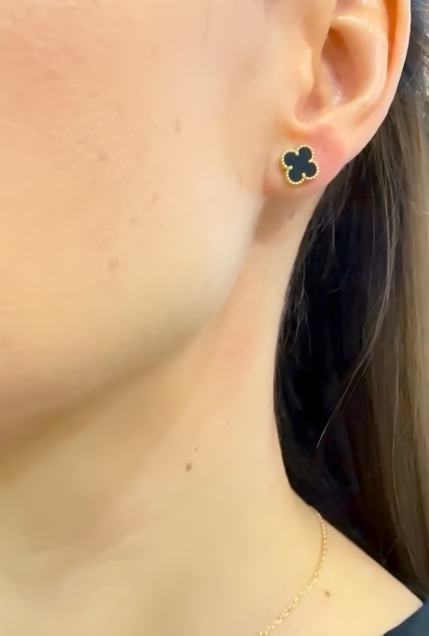 ХИТ!!!Пуссеты Van Cleef & Arpels Sweet Alhambra Желтое золото 18 карат, Оникс