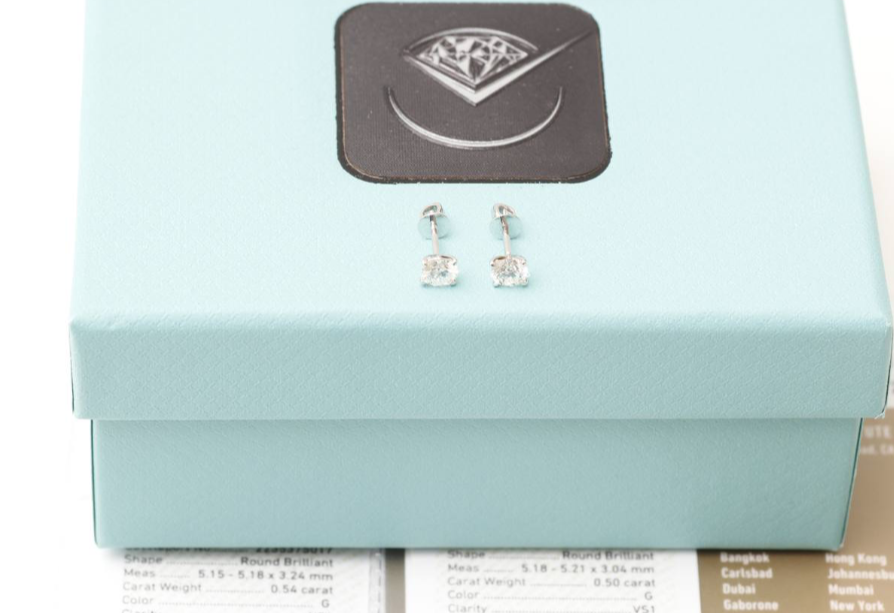 ПУСЕТЫ С ТОПОВЫМИ БРИЛЛИАНТАМИ ПО 0.50/0.54 CT G/VS1 СЕРТИФИКАТ GIA