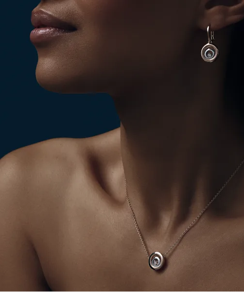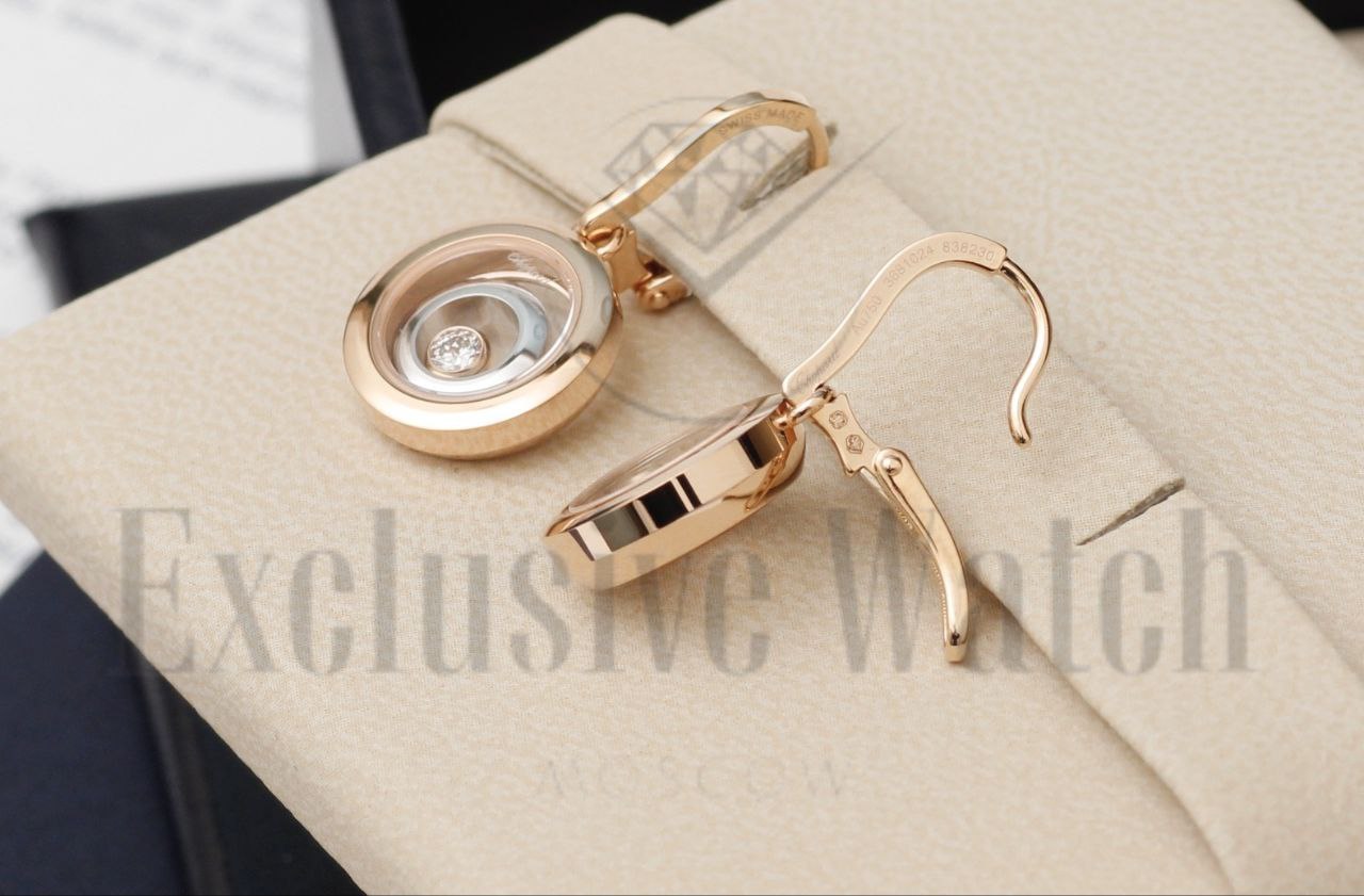 СЕРЬГИ *CHOPARD* HAPPY SPIRIT 838230-9001 /РОЗОВОЕ И БЕЛОЕ ЗОЛОТО/ПЛАВАЮЩИЕ БРИЛЛИАНТЫ 0.19ct