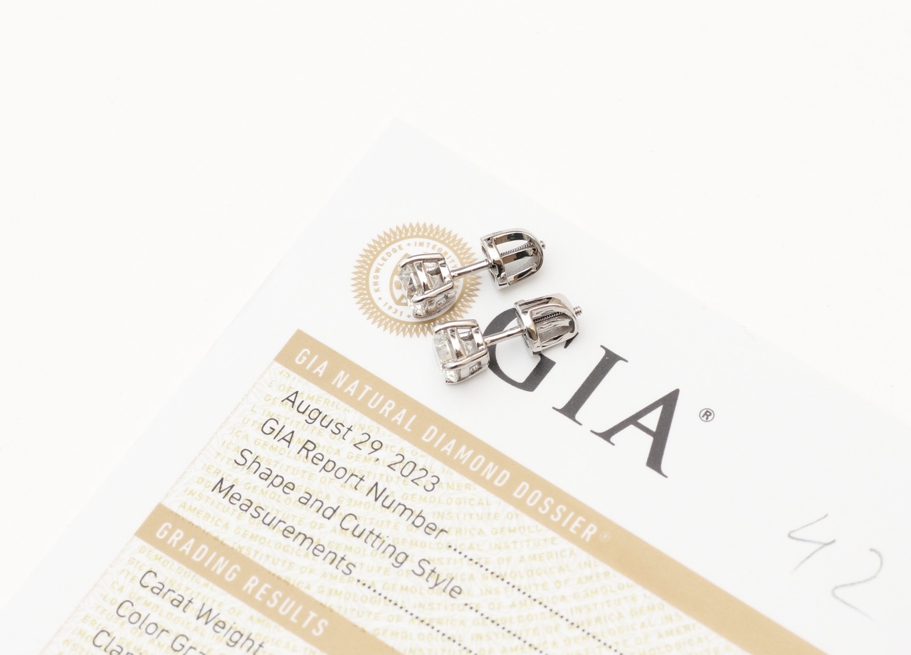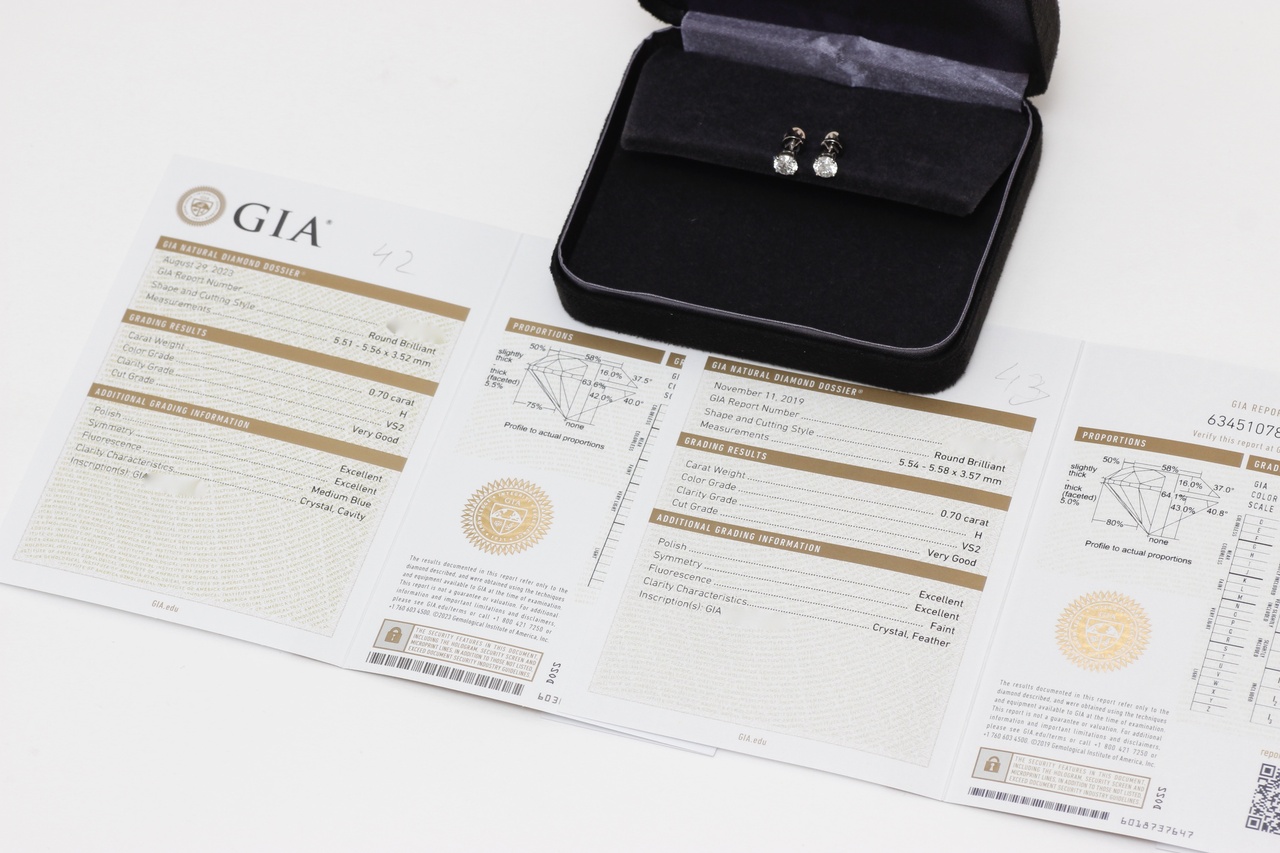 ИДЕАЛЬНАЯ ПАРА ПУСЕТОВ С ТОПОВЫМИ БРИЛЛИАНТАМИ ПО 0.70 КАРАТ H/VS2 СЕРТИФИКАТ GIA