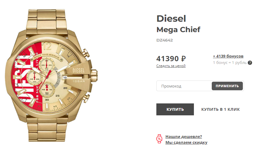 Diesel "Mega Chief" (честно сказать, я понимаю что ценители часов не очень любят дизель, да я и сам вижу, выглядит ярко, но сам бренд... хочется усидеть в таком трудном деле на двух стульях, и уложиться тысяч в 70, и купить действительно качественные часы, с ярким дизайном)