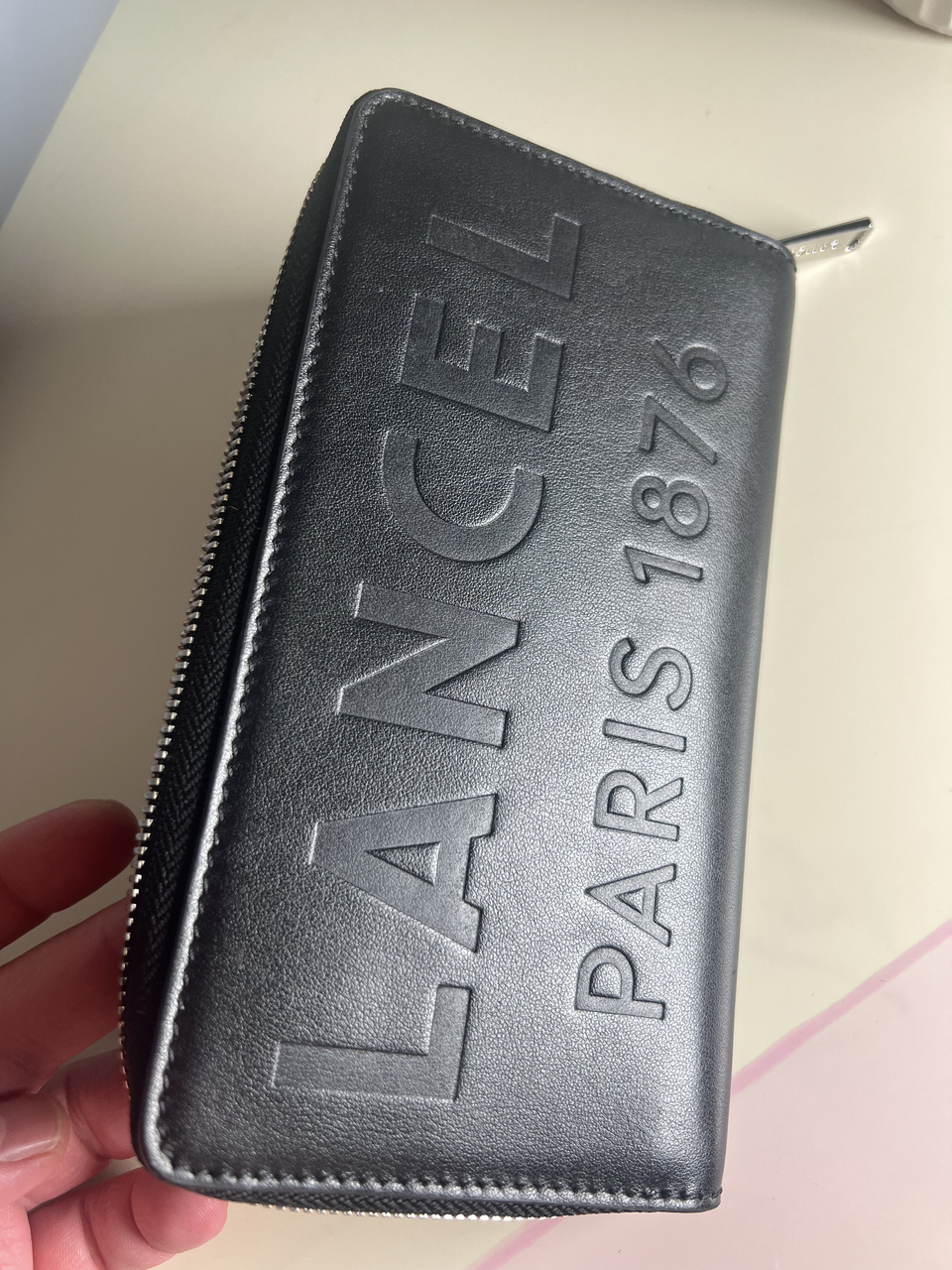 LANCEL PARIS - классический черный женский кошелек из шикарной гладкой кожи