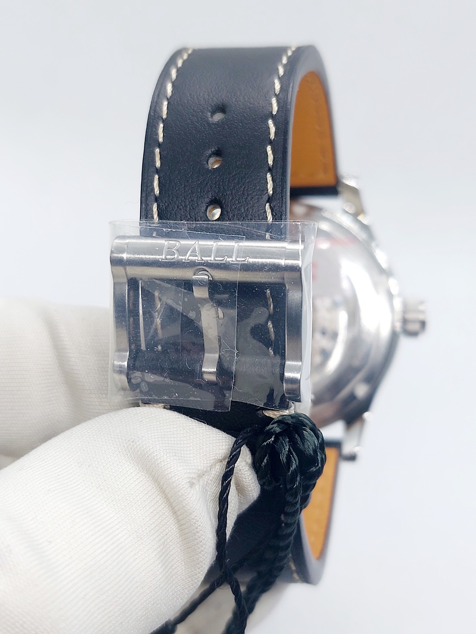 Ball оснащены кожаным ремешком из телячьей кожи черного цвета с белой прострочкой и классической застёжкой на которой нанесен логотип бренда.