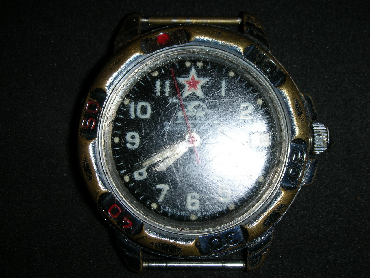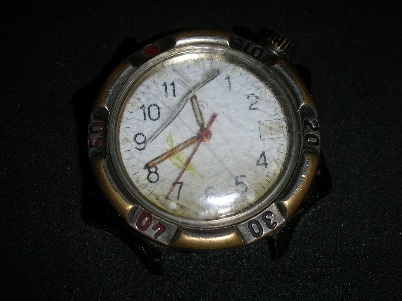 Доброго времени суток. Есть трое часов, механизмы почти в норме. Часы эксплуатировались в жестких условиях. На всех корпусах облезло покрытие и присутствует коррозия самого корпуса. На двух из них лопнуты стекла, присутствует ржавчина на стрелках.Все корпуса в мелких раковинах, съедены заводные головки, выработка в отверстиях, где стоят "шпильки", на которых держится браслет. На "Генеральских" выгорел циферблат.