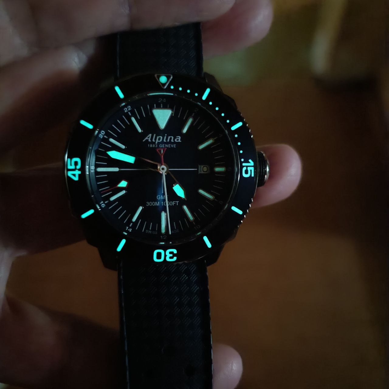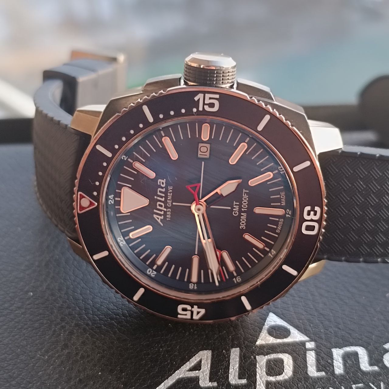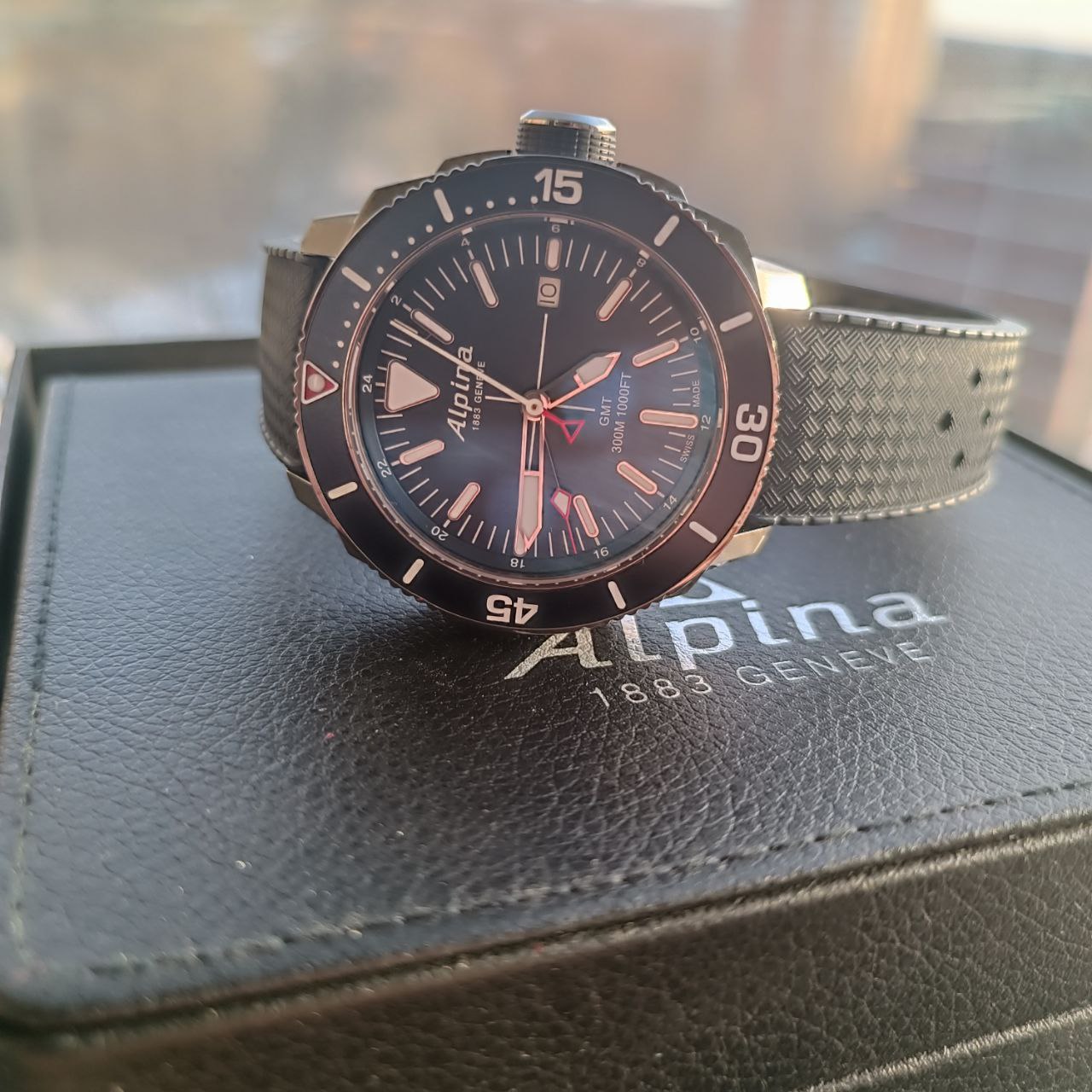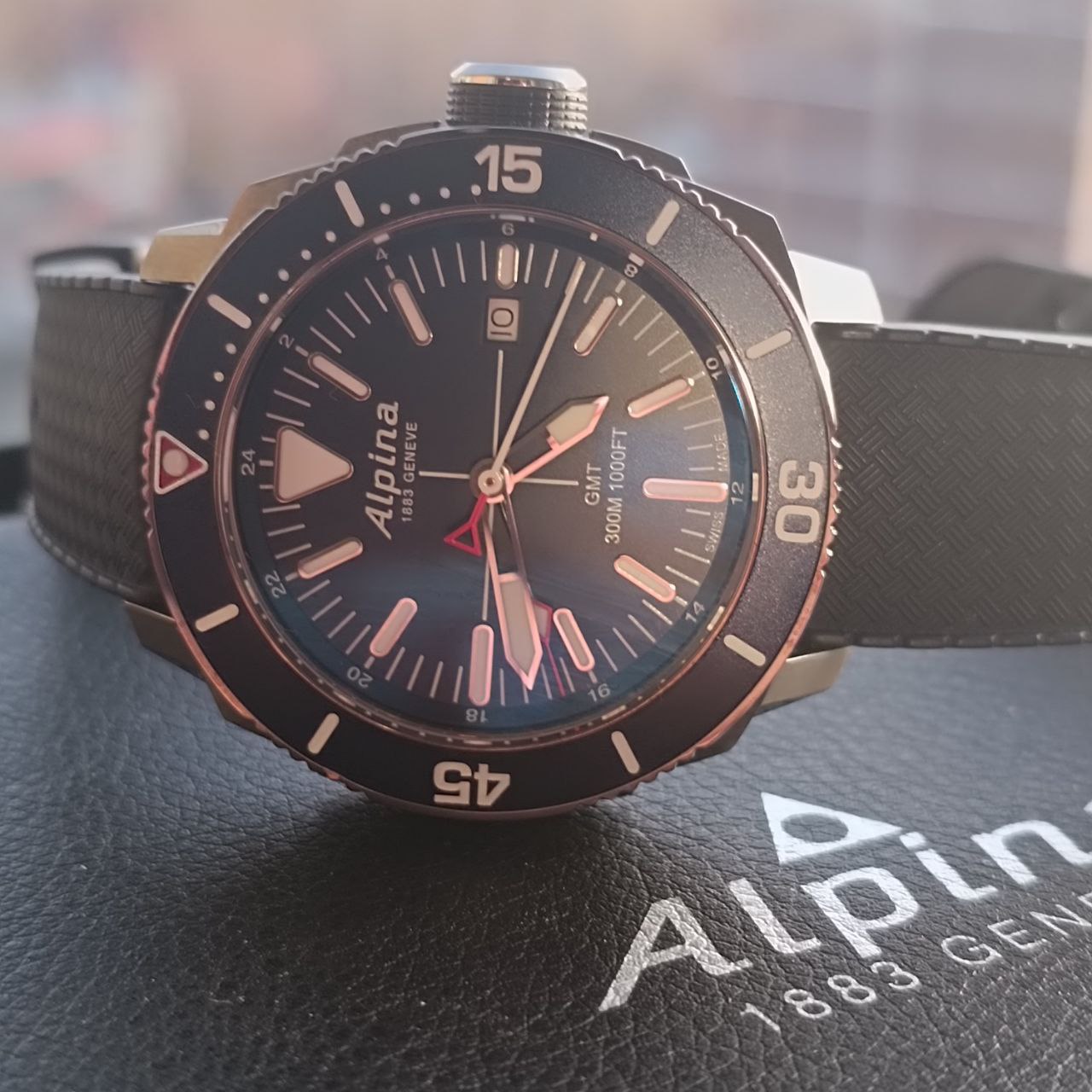 Кварцевый дайвер ALPINA SEASTRONG DIVER GMT Quartz//синий циферблат//на каучуке//