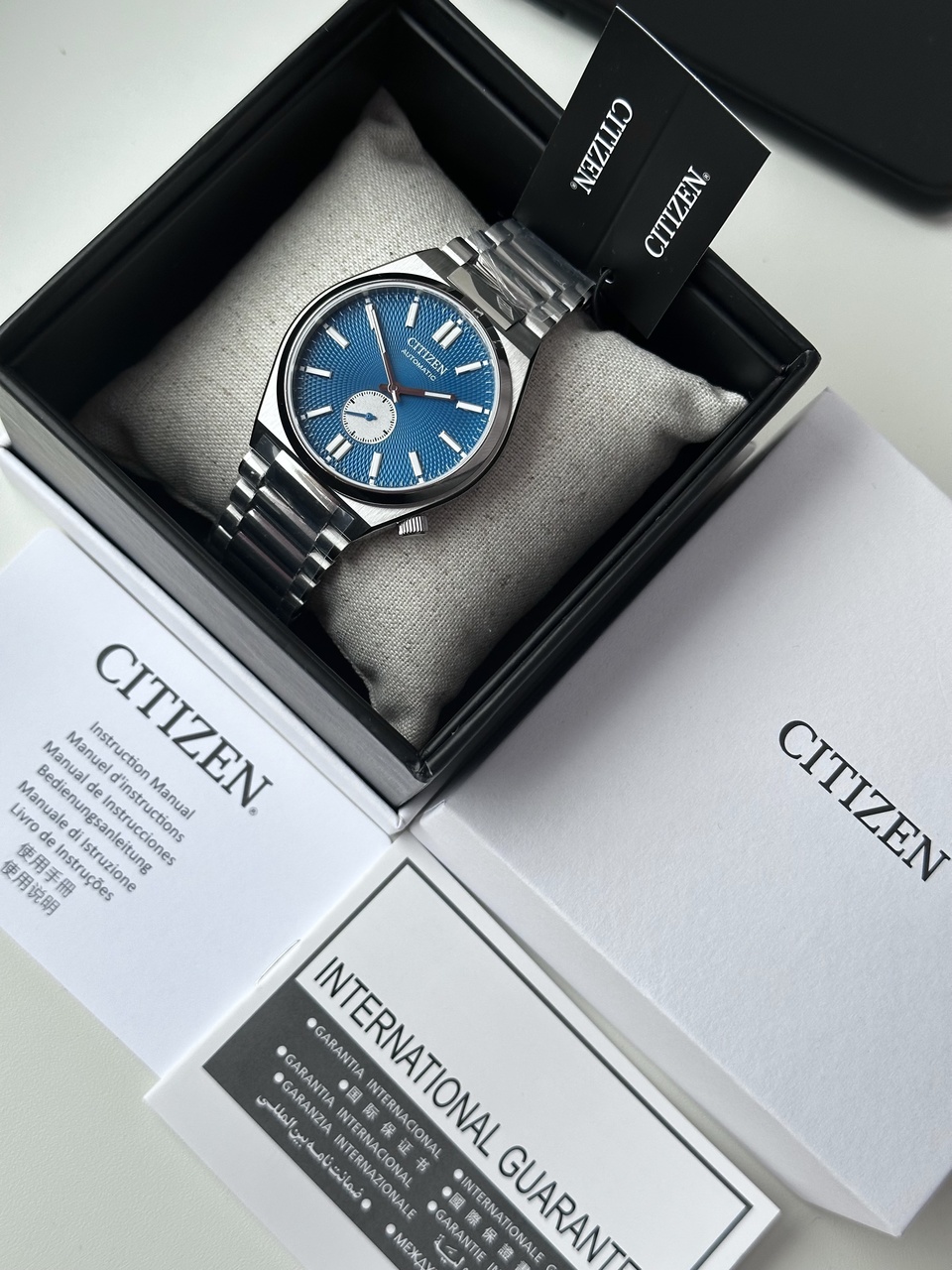 CITIZEN TSUYOSA NEW! NK5010-51L. ГОЛУБОЙ ЦИФЕРБЛАТ. САПФИРОВОЕ СТЕКЛО. ОБНОВЛЁННЫЙ БРАСЛЕТ И МЕХАНИЗМ. ГИЛЬОШЕ ЦИФЕРБЛАТ. УЗОР В ВИДЕ ПАРИЖСКИХ ГВОЗДЕЙ.
