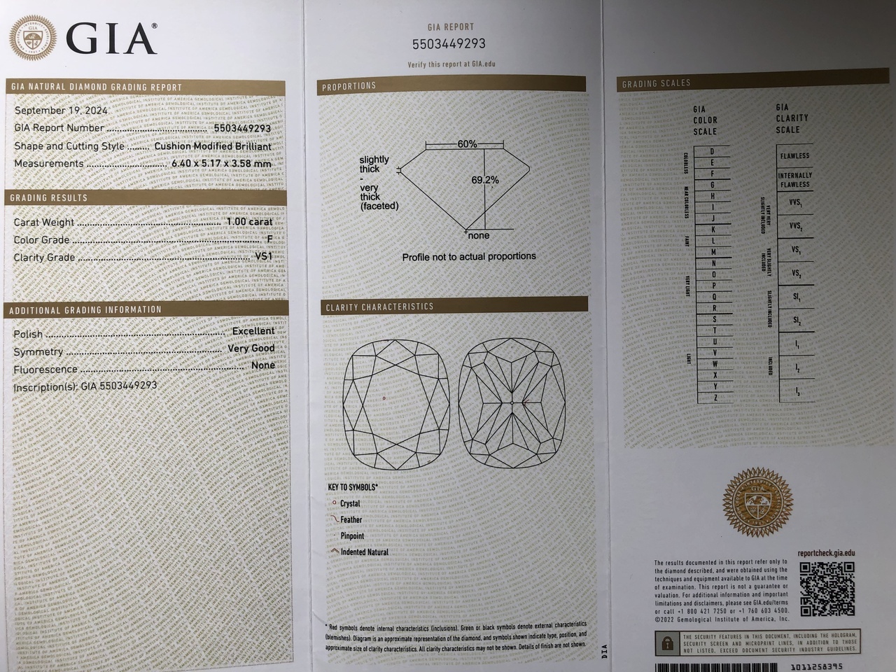 Кольцо белое золото с бриллиантом 1.00ct F/VS1 новое (GIA и МГУ) недорого