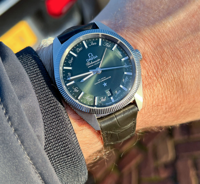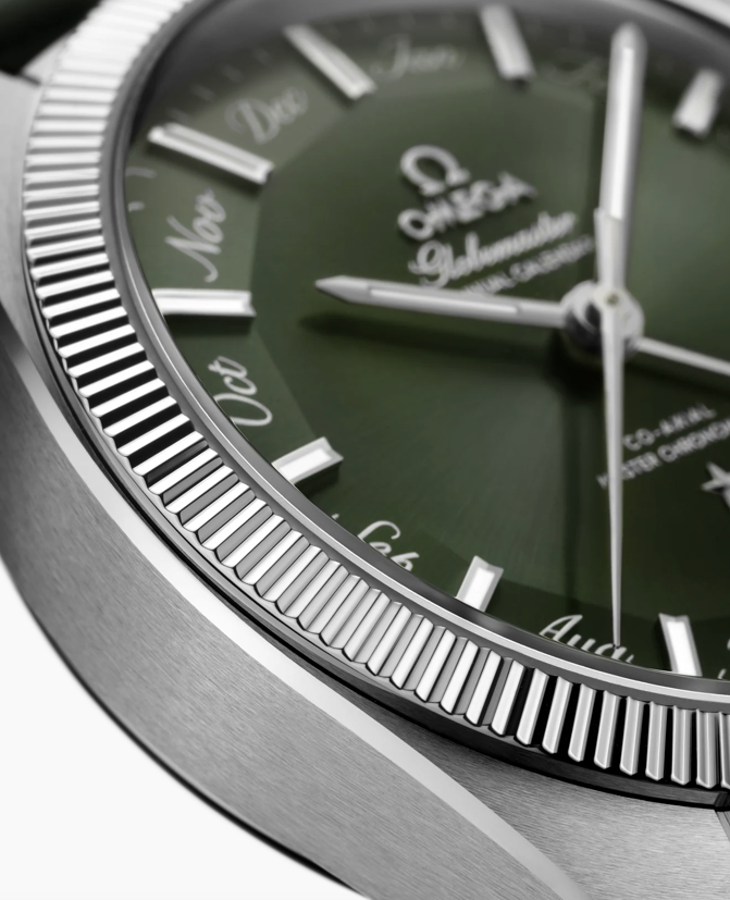 Циферблат: необычного болотно-зеленого цвета с радиальным сатинированием.