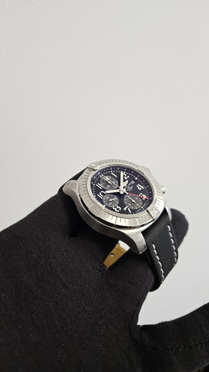 Смелый, чрезвычайно прочный и ударопрочный хронограф Avenger GMT 45 сочетает в себе точность и мощный дизайн. Как настоящий Breitling Avenger, он обеспечивает непревзойденную безопасность и надежность любому воздушному искателю приключений. Хронограф Avenger GMT 45 оснащен прочным 45-миллиметровым корпусом из нержавеющей стали, черным циферблатом и браслетом из нержавеющей стали или ремешком из кожи военного образца в тон. Благодаря прочному безелю и специальному рисунку на заводной головке и кнопках хронографа Avenger Chronograph GMT 45 можно легко использовать в перчатках.
