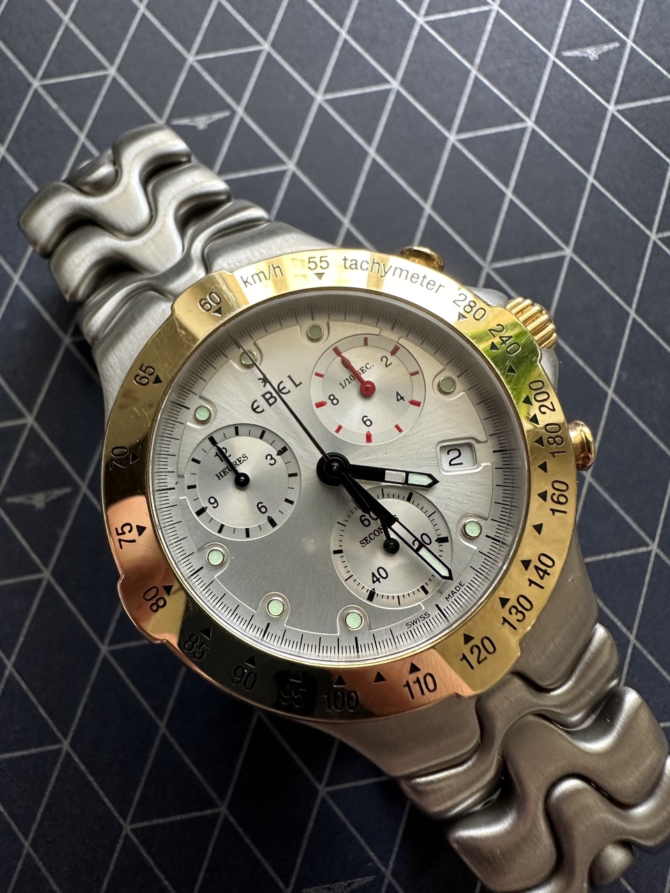 Безель часов и кнопки выполнены из золота 18К ( для понимания, вес золота в безеле порядка 11грамм)