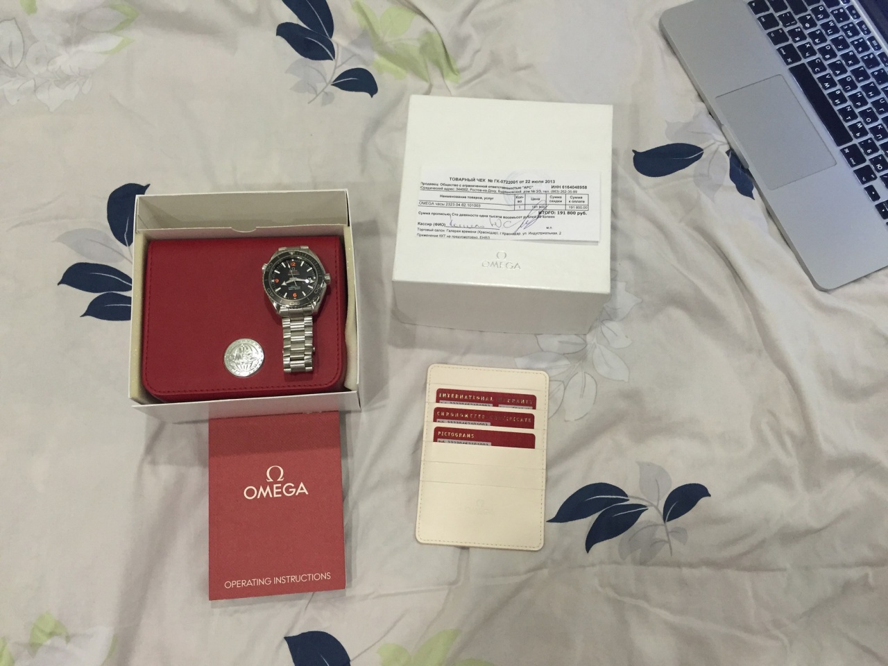 Omega Planet Ocean 600 Co-axial, 45,5 мм, куплены 22 июля 2013 года в Краснодаре, в бутике "Галерея времени" (ООО "АРС"). С момента покупки никаких дефектов механизма не замечал, идут точно (правда на спец оборудовании не замерял), скачков времени замечено не было. Ношу ежедневно с момента покупки. Из-за стабильной работы ни разу не был ни в каких сервисах. Все документы, коробка, карты с печатями офф дилера и чек естественно на руках.