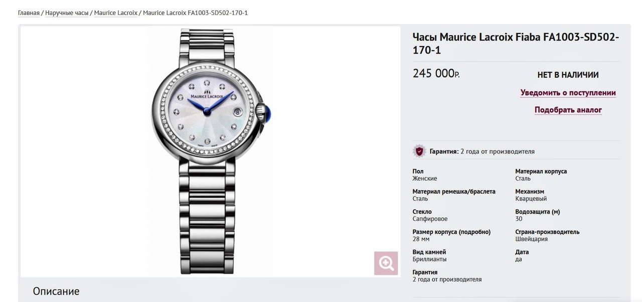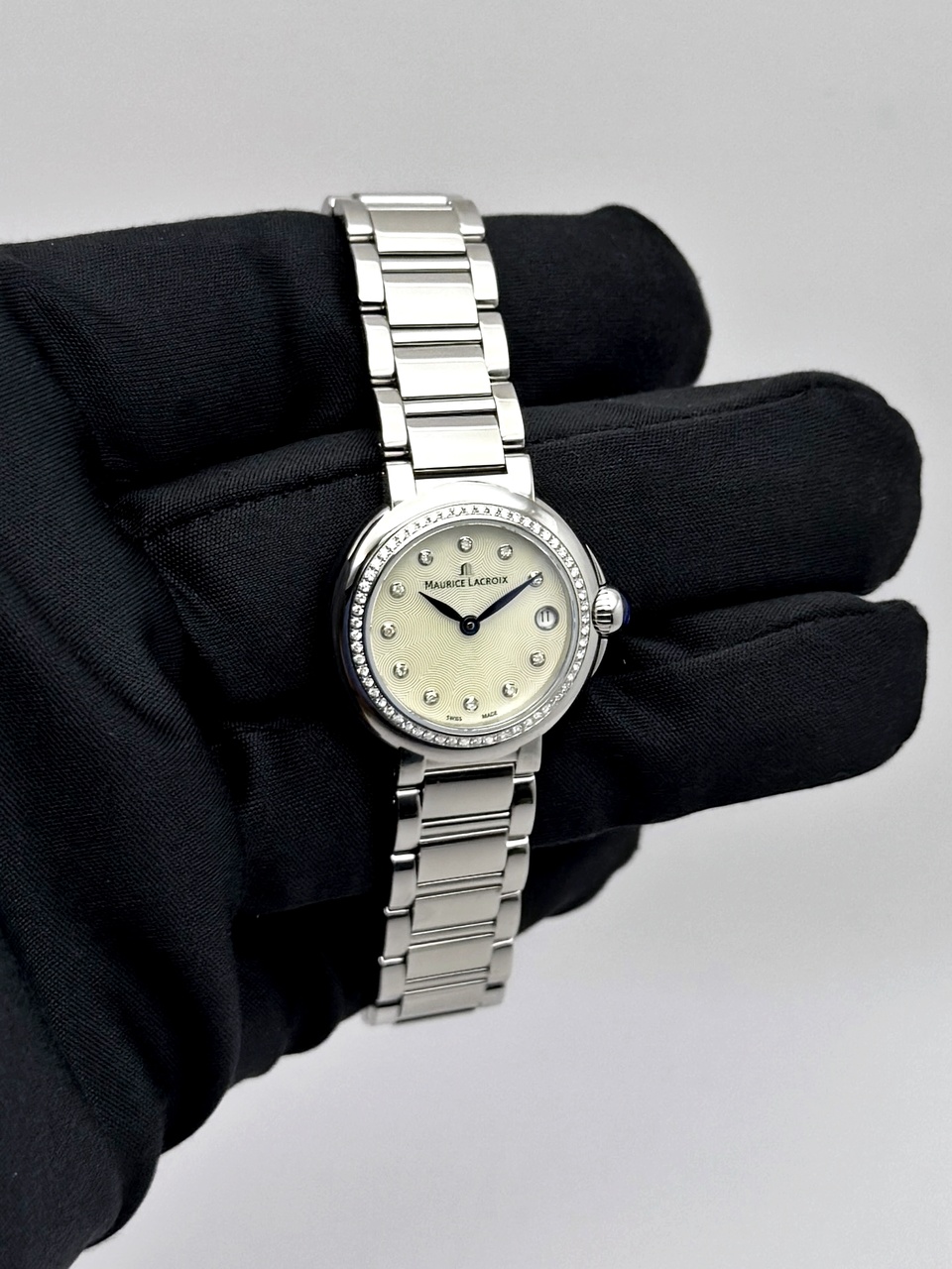 Дополните свой неповторимый образ роскошным аксессуаром, которому нет равных. С Fiaba Date от швейцарской часовой компании Maurice Lacroix - это легкий способ стать безупречной. Браслет из нержавеющей стали с раскладывающейся застежкой. Инкрустация бриллиантами превращает элегантные часы в изысканное украшение. Это лучший выбор для тех, кто хочет подчеркнуть свой высокий статус и неординарность.
