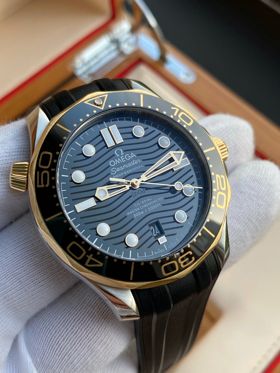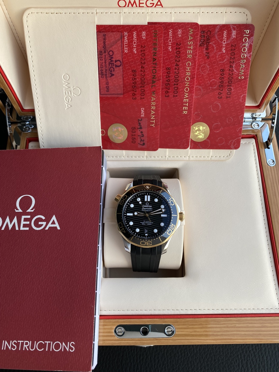 OMEGA Seamaster Diver 300m 42mm Steel / 18k Gold / Black Dial / каучук. 210.22.42.20.01.001