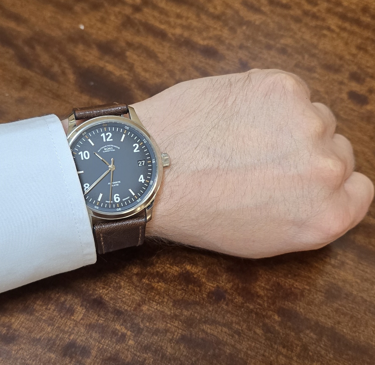 В общем, часами я доволен, для работы подходящий вариант. На них приятно лишний раз просто так посмотреть, не ради времени, а ради удовольствия. На руке сидят удобно, не высокие, под рубашку вполне помещаются. Радует, что из Glashütte – часовой «столицы» Германии. Понравилось многое именно из Mühle, но они оказались ещё более великоваты для моей худой руки.