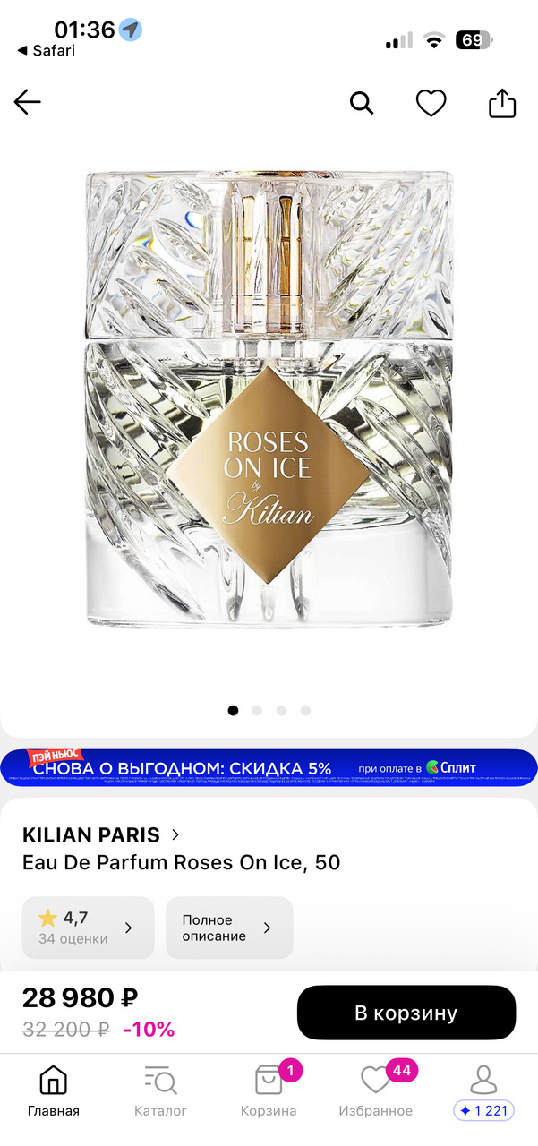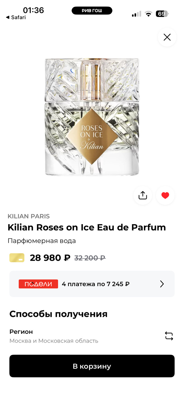 Продается великолепный парфюм KILIAN Roses on Ice.