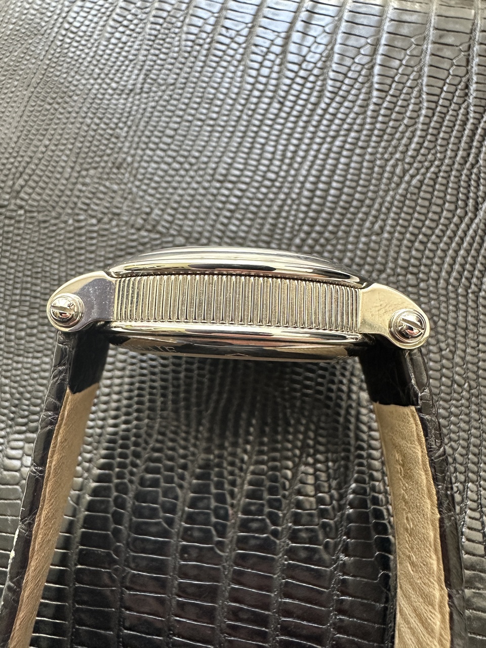 Очень красивая экзотика от старейшего бренда с космическими ритейлами. Солидная классика. По бокам-«монетная» насечка. Механизм-неубиваемый 7750, ход идеальный, дефектов нет вообще. Коробка из натурального дерева, ремень-родной аллигатор. Допфото, видео-без проблем.