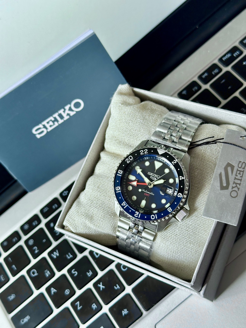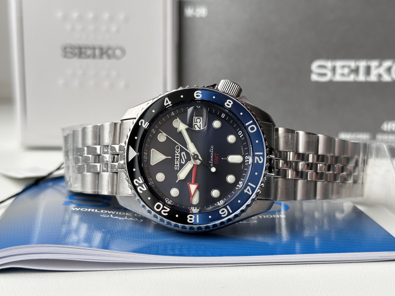 SEIKO 5 SPORTS GMT SSK003K1 BATMAN! ЮБИЛЕЙНЫЙ БРАСЛЕТ, ЦИКЛОП, СИНИЙ ЦИФЕРБЛАТ, ОТЛИЧНАЯ ЦЕНА, ХИТ!