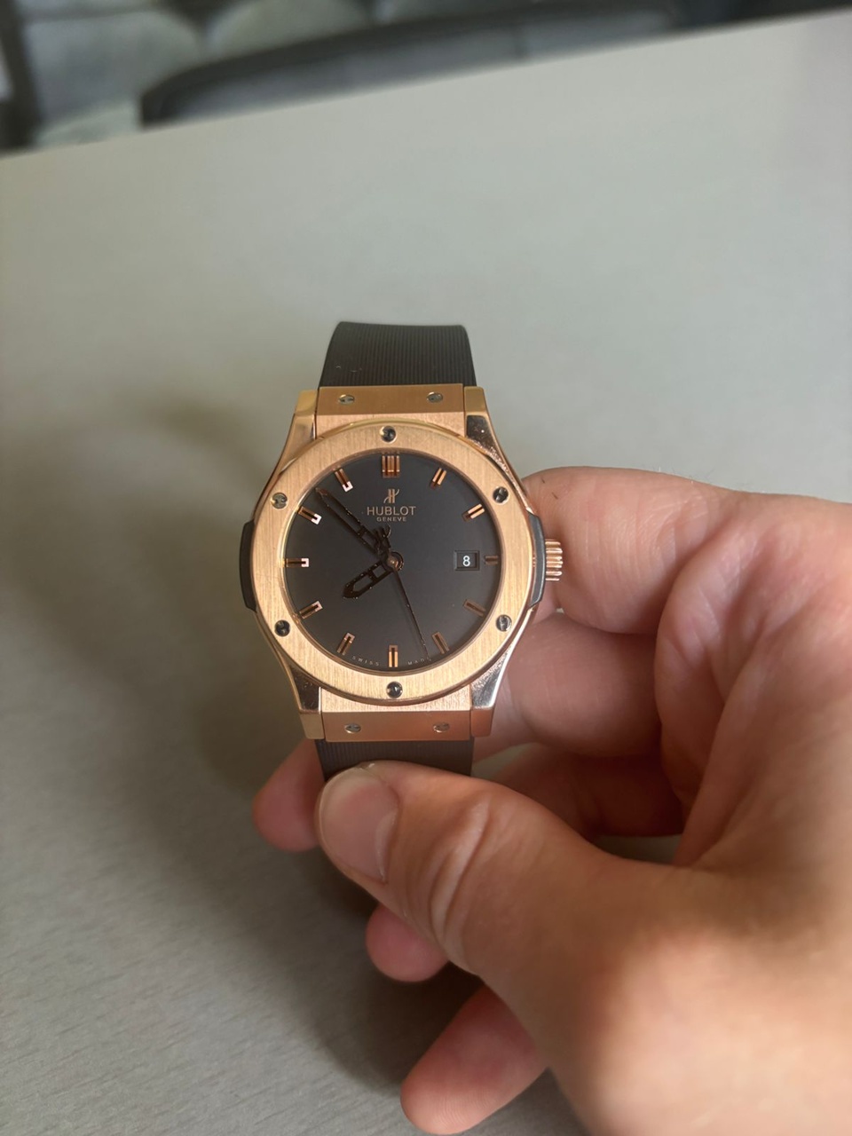 Продам оригинальные часы Часы Hublot Rose Gold 42mm. Полный артикул: hublot 542.px.1180.rx. Приобретались в Перспективе без коробки. В отличном состоянии. Коробки нет, из документов только гарантийная карточка Перспективы.