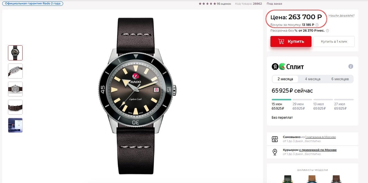 В продаже механические наручные часы Rado из коллекции Captain Cook, названные в честь выдающегося британского капитана Джеймса Кука, внешний облик соответствует часам 1962 года. Модели присущи винтажные элементы, оригинально смотрятся стрелки в виде меча и стрелы с шикарным люмом.