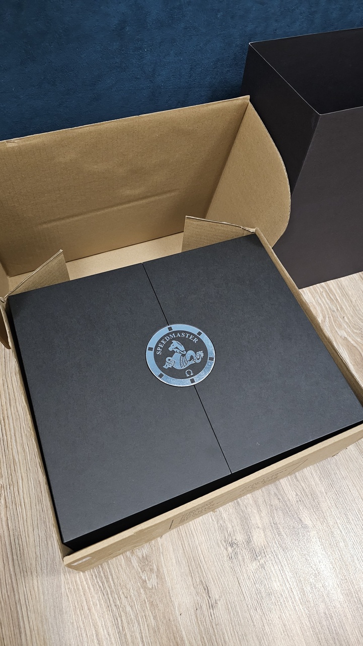 Полнейший комплект со всеми бирками, стикерами, коробками, карточками и буклетами. У данной модели поистине царская комплектация в подарочной коробке Moonwatch. В комплект входят сменный ремешок NATO, ремешок для астронавтов, инструмент для замены браслета, лупа, медальон и книга, рассказывающая о приключениях Speedmaster.