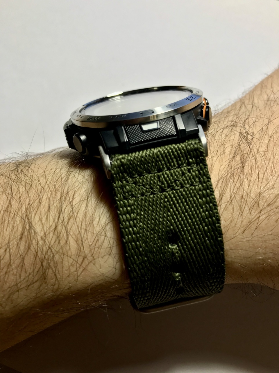 7.Тканевый ремешок подойдёт от CASIO PRO TREK PRW-6600YB-3E, но его надо уменьшать на 1 мм.