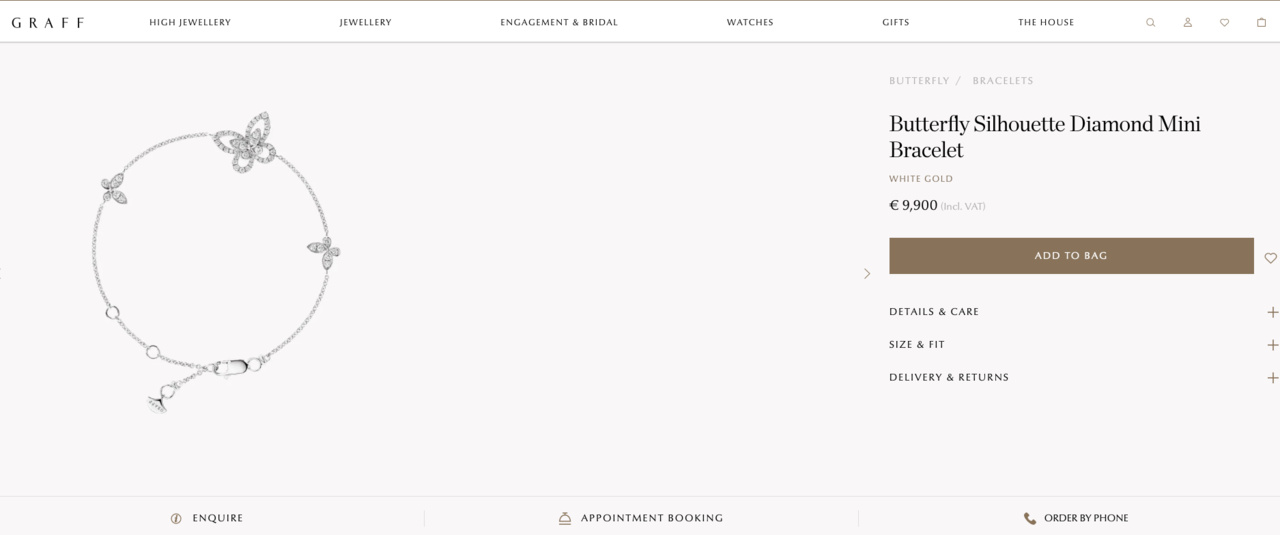 GRAFF БРАСЛЕТ GRAFF BUTTERFLY SILHOUETTE DIAMOND MINI BRACELET RGB466 Белое золото 750/Бриллианты круглой огранки 0.70 карат