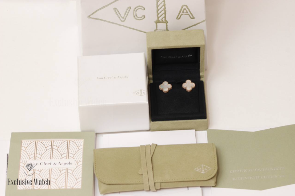 СЕРЬГИ *VAN CLEEF & ARPELS* VINTAGE ALHAMBRA VCARA44100/ЖЕЛТОЕ ЗОЛОТО 18 КАРАТ/БЕЛЫЙ ПЕРЛАМУТР