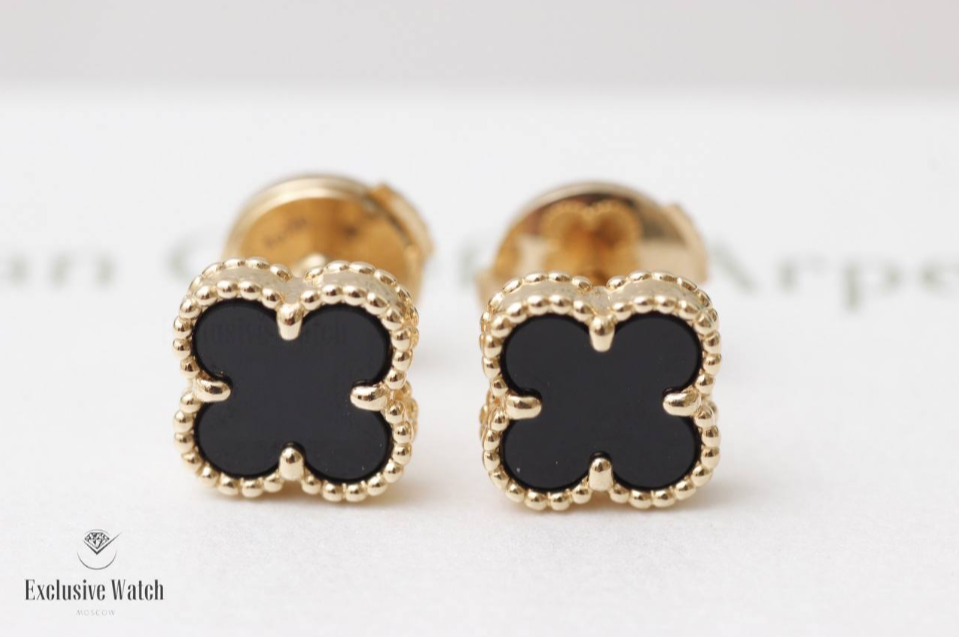 ПУСЕТЫ *VAN CLEEF & ARPELS* SWEET ALHAMBRA VCARA44900/ЖЕЛТОЕ ЗОЛОТО 18 КАРАТ/ОНИКС