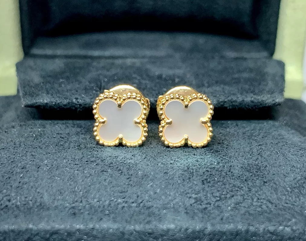 ПУСЕТЫ *VAN CLEEF & ARPELS* SWEET ALHAMBRA VCARA44800/ЖЕЛТОЕ ЗОЛОТО 18 КАРАТ/БЕЛЫЙ ПЕРЛАМУТР