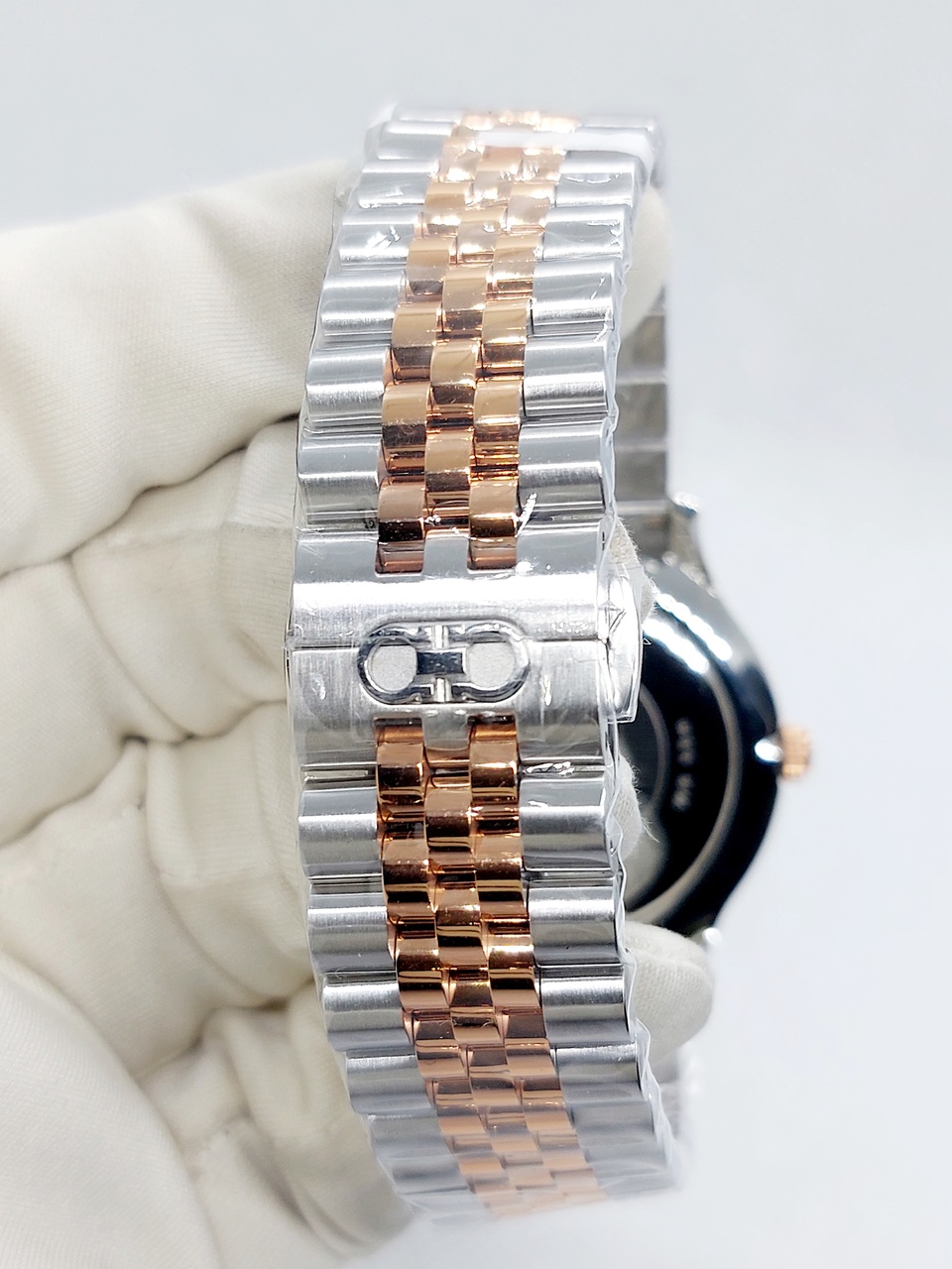 Часы комплектуются интегрированным биколорным браслетом с раскладывающейся застежкой бабочкой на которой нанесена монограмма Ганчини.
