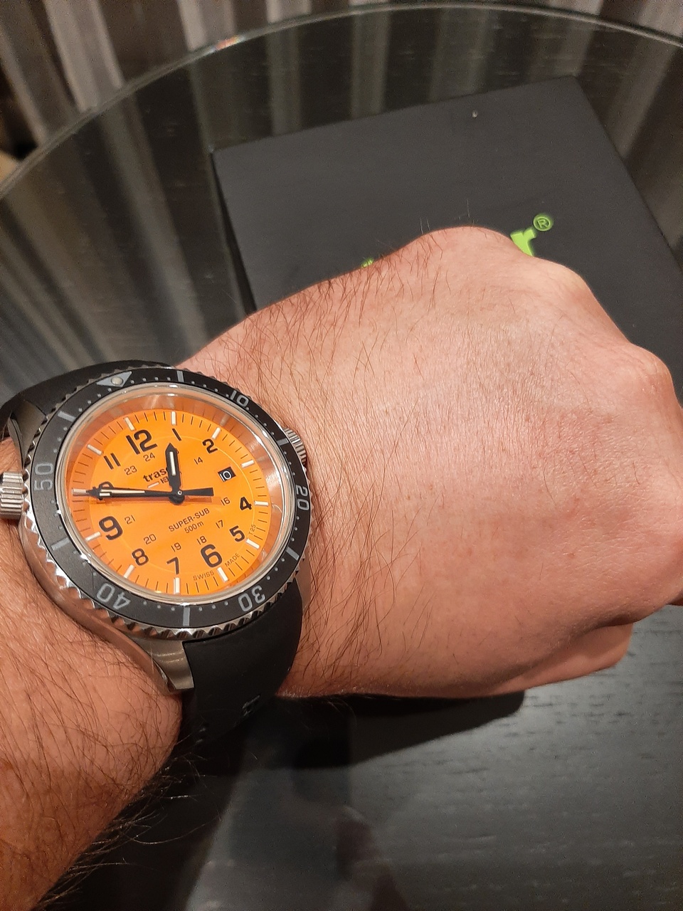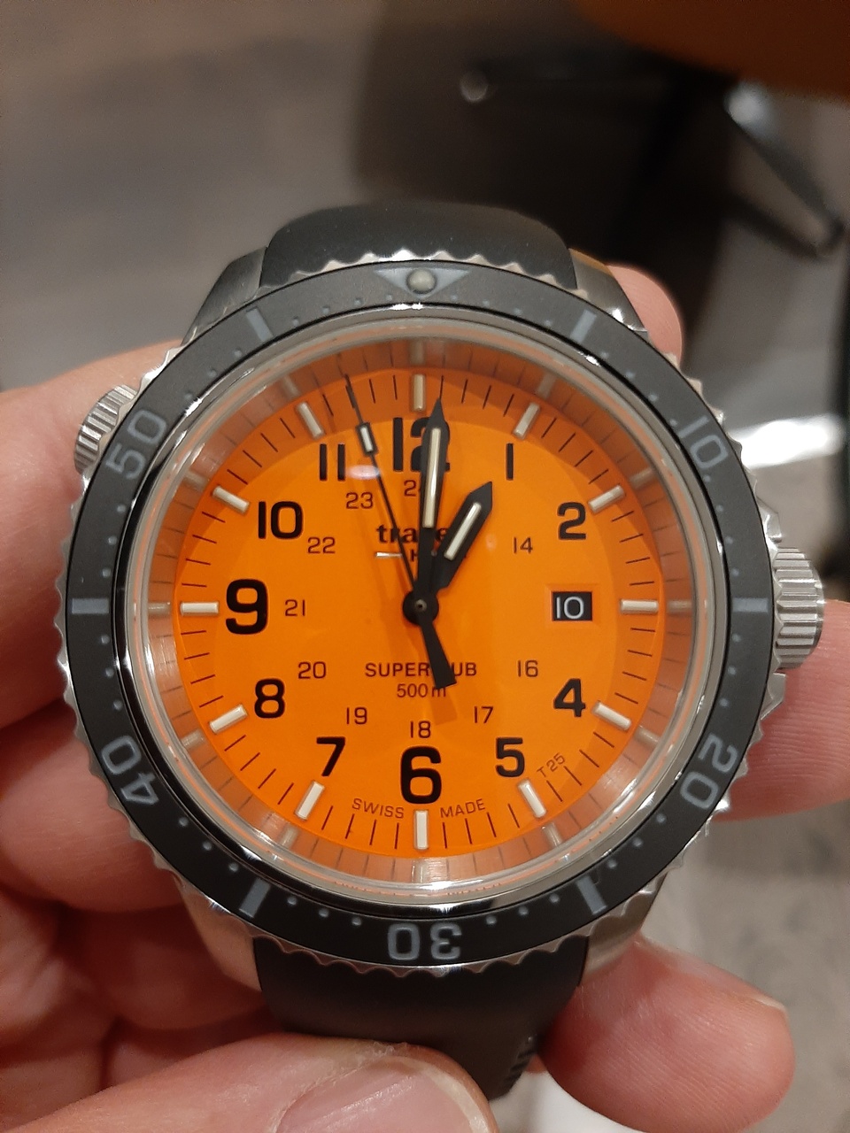 Traser P67, дайверы с оранжевым циферблатом и тритиевой подстветкой.