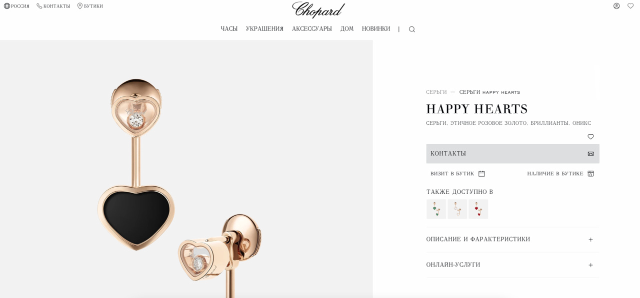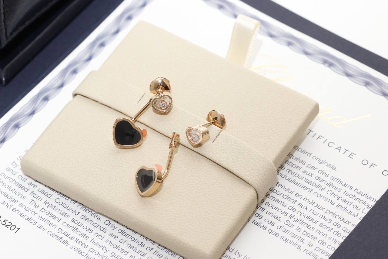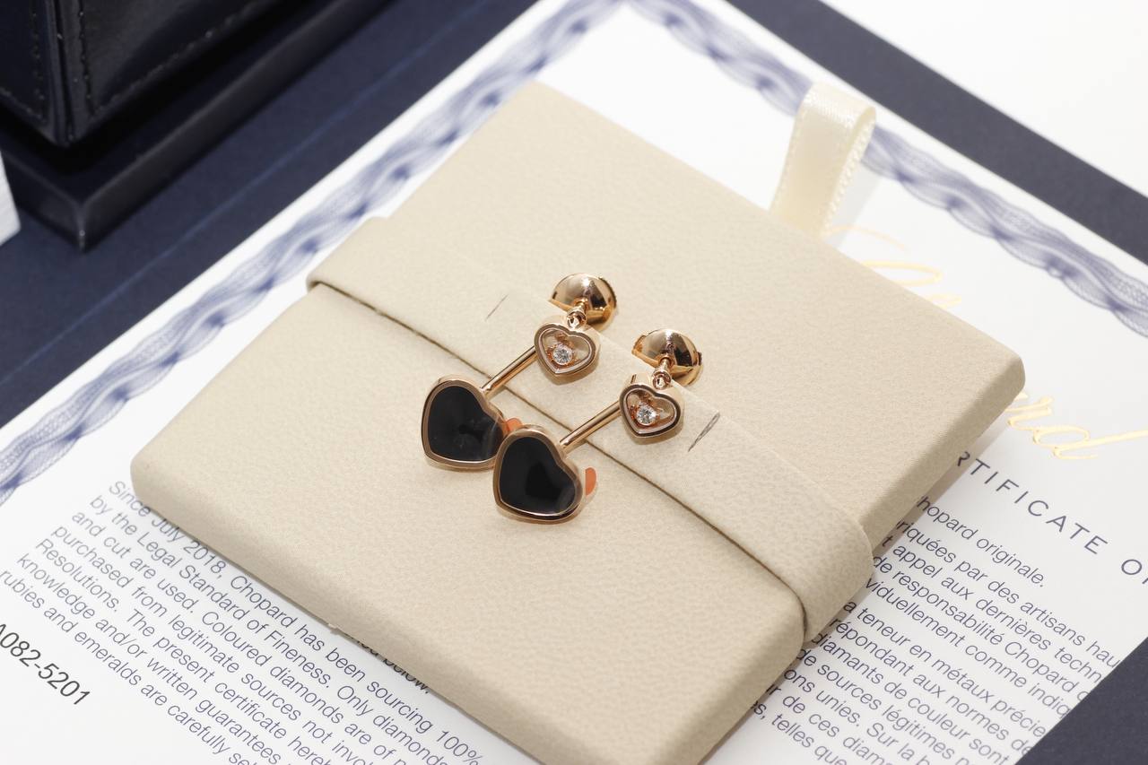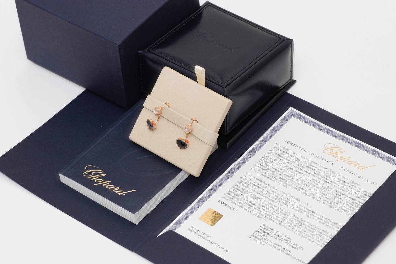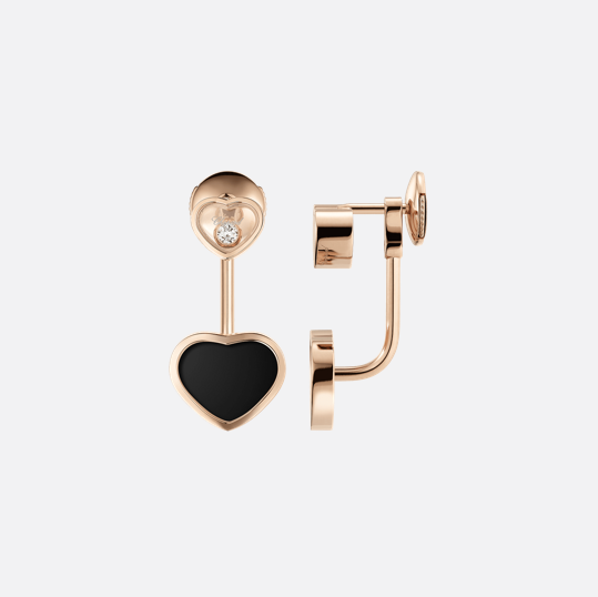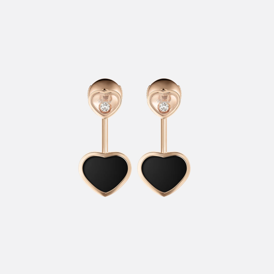 СЕРЬГИ *CHOPARD* HAPPY HEARTS 83A082-5201/РОЗОВОЕ ЗОЛОТО/ПЛАВАЮЩИЕ БРИЛЛИАНТЫ/ОНИКС