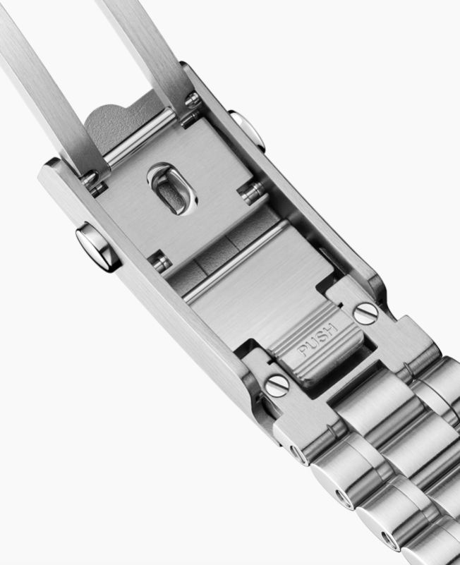 Застежка: Браслетная, раскладывающаяся при нажатии на кнопки двойной системы блокировки, с системой регулировки длины.