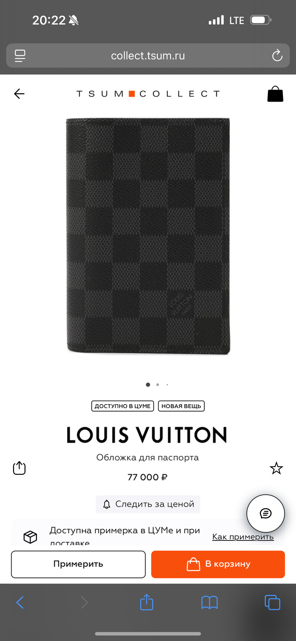 Обложка для паспорта LOUIS VUITTON Damier Graphite