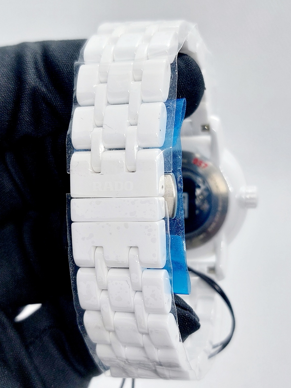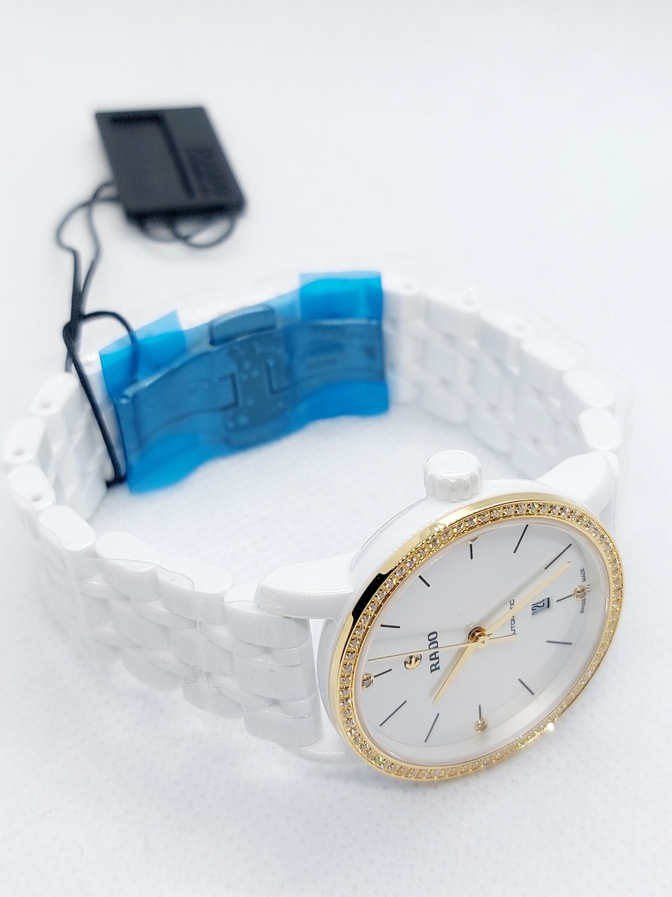Часы комплектуются керамическим браслетом белого цвета с титановой застежкой бабочкой на которой нанесен логотип бренда(максимальная длина браслета 18 см).
