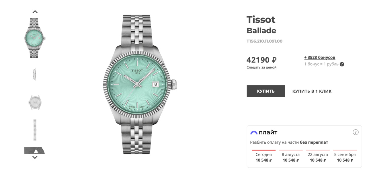 Tissot Seastar 1000 Quartz Chronograph green Hamilton Jazzmaster Thinline Quartz blue Certina DS Action Gent titanium Bulova Racer Chronograph light blue Rotary Henley GMT pepsi (были) Tissot PRX white Citizen Chandler black (были) Bulova Military UHF black
