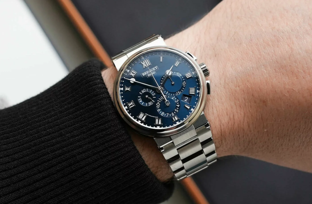 *BREGUET* MARINA CHRONOGRAPH 5527TI/Y1/TW0 42.3 mm НА БРАСЛЕТЕ С СИНИМ ЦИФЕРБЛАТОМ