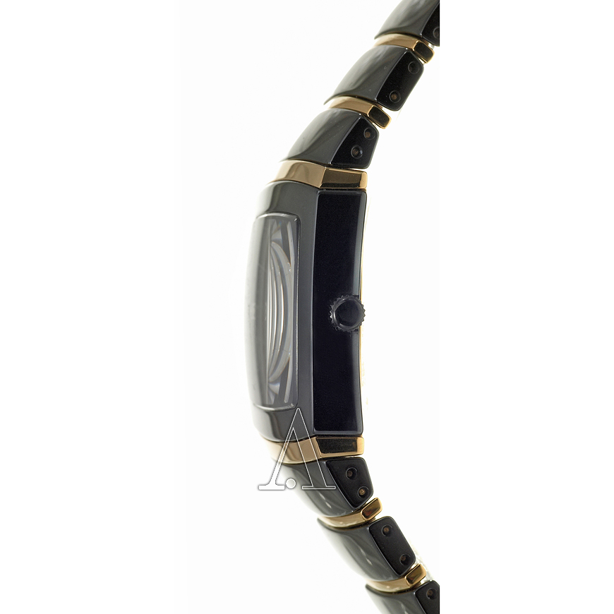 Черный циферблат с 2 бриллиантами, браслет из керамических пластин с позолоченными вставками нержавеющей стали - воплощенная элегантность. Эти часы сделаны для того, кто действительно ценит стиль, удобство и надежность настоящих швейцарских часов.