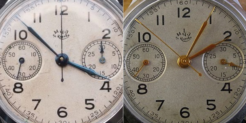 На фото ниже часы на GUB Kaliber 64 (слева) и на UROFA 59 1МЧЗ (справа). Явно видно различие в размерах механизмов при идентичности компоновки, устройства и кинематической схемы.