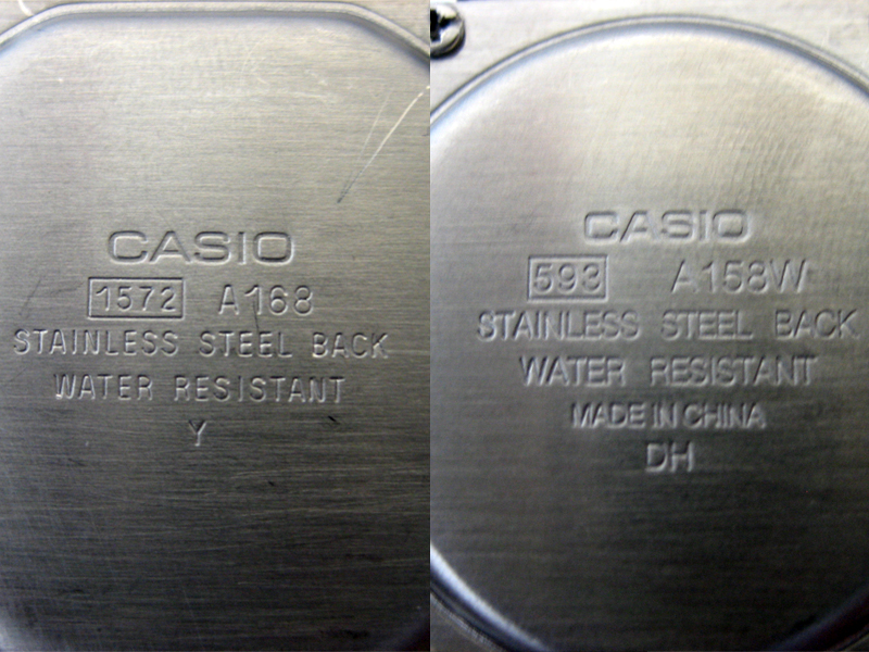 Обращу внимание - это не Casio, у Касио качество лучше. После китайца, примерно в 2001-м, и были A158W, но началась ЧБ и ассортимент расширился.