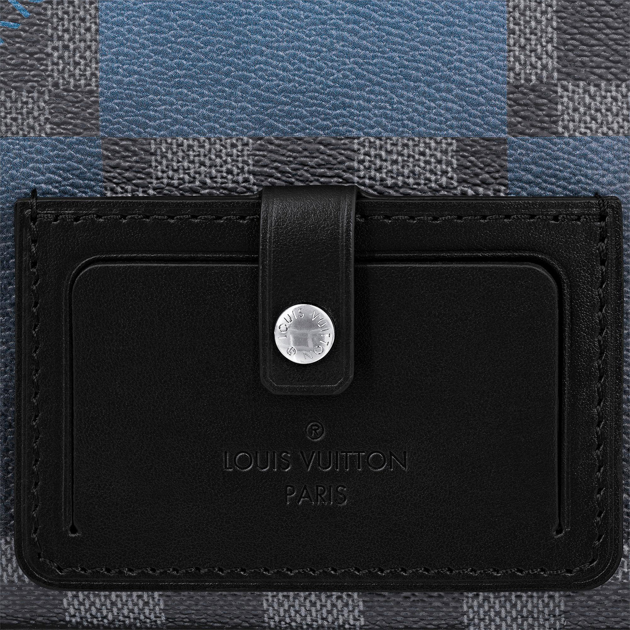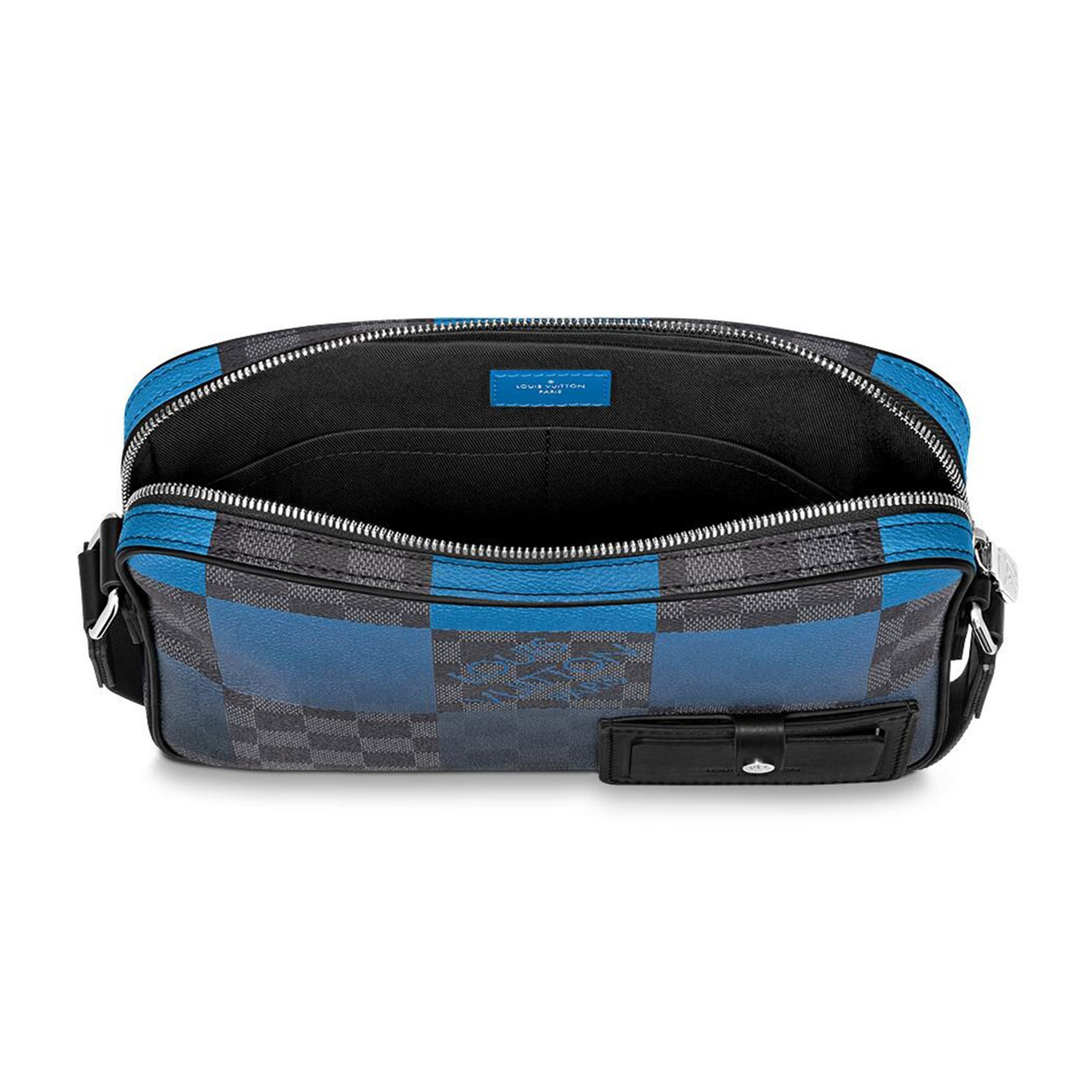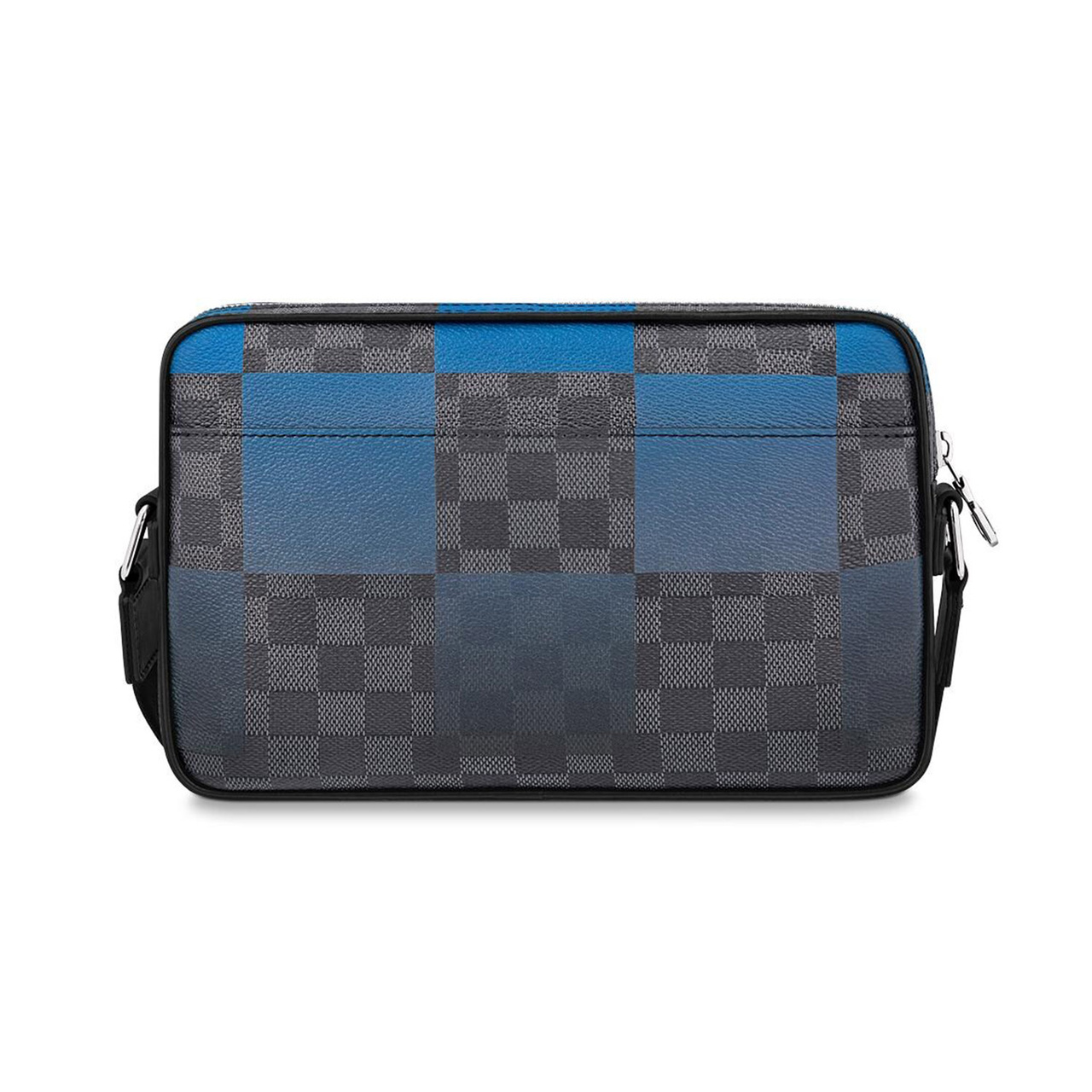 Серая шашка "Damier Graphite", дополненная принтом шашки Damier Giant синего цвета с эффектом градиента.