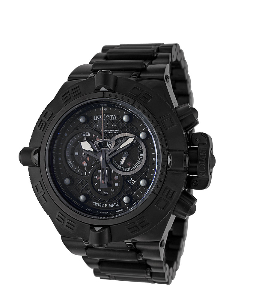 Корпус, безель и браслет из стали с ионным покрытием черного цвета.