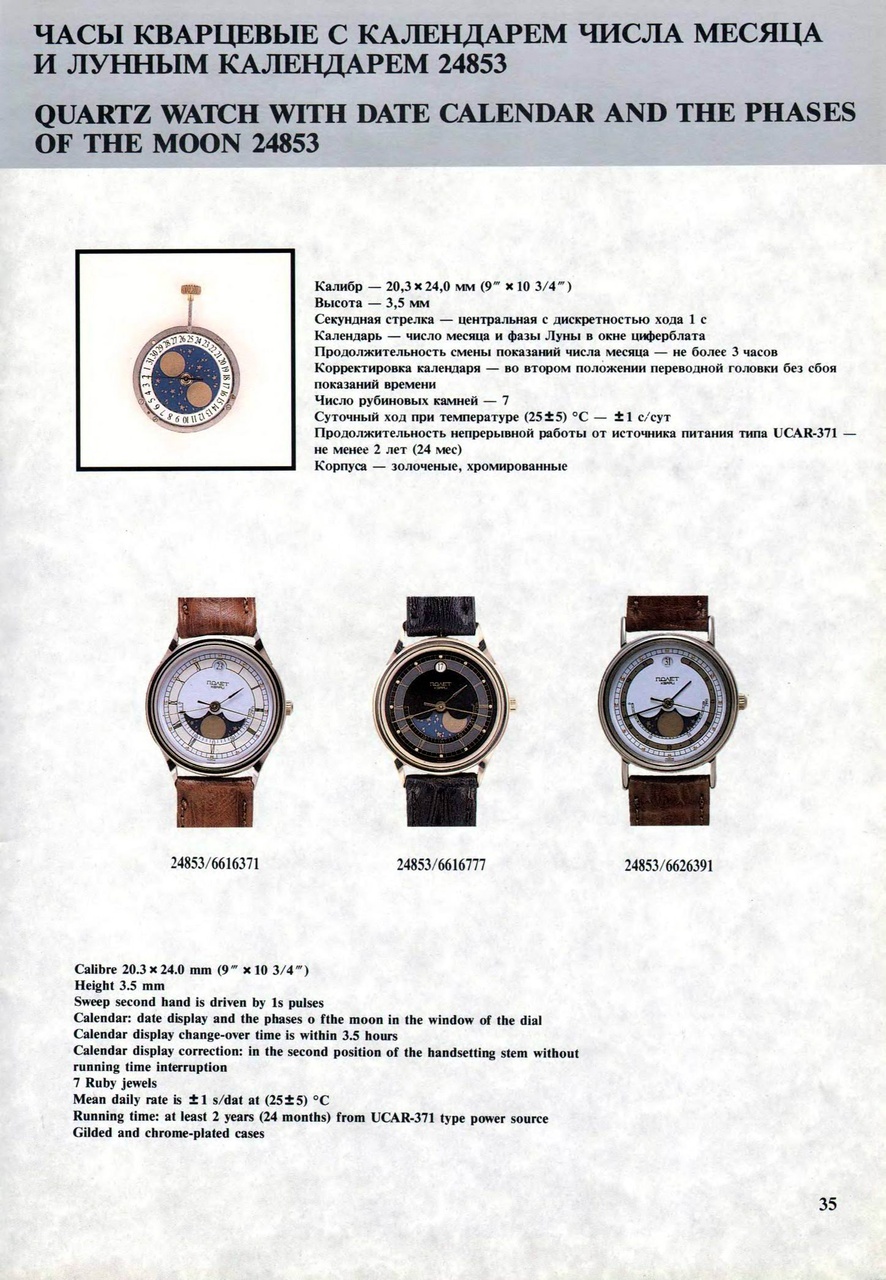 Кварцевые часы Полёт 24-го калибра с календарем даты и лунным календарем (указателем фазы Луны). Стоят немного, увы - у них маленький размер (по современным понятиям - на женскую руку).