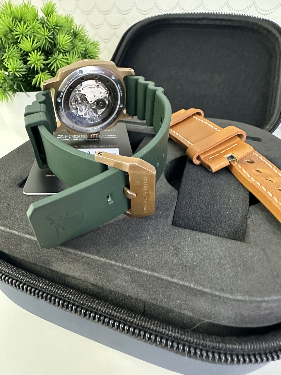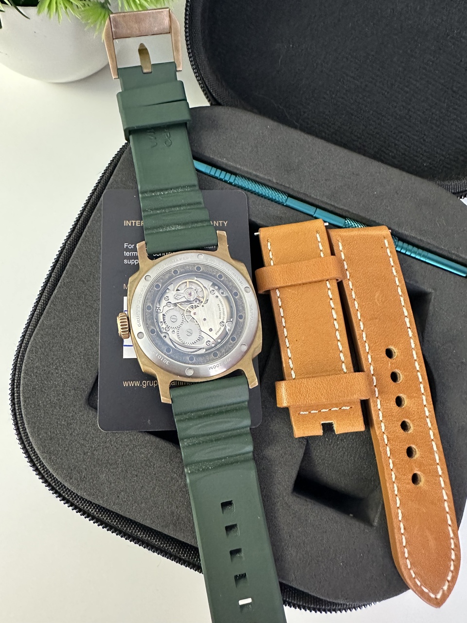 Продам бронзовые Gruppo Gamma Peacemaker PN-19, часы известного бренда, на «правильной бронзе CuSn8», со временем появляется красивая патина ( по желанию можно легко убрать). Диаметр 43мм, высота 13мм. Выпуклое антибликовое сапфировое стекло, заднее стекло также сапфировое.Механизм швейцарский Sellita SW219-1, с ручным заводом. Завинчивающаяся заводная головка, водопроницаемость до 200м. Сэндвич циферблат с очень красивым зеленым цветом. Фирменный каучуковый ремень с бронзовой баклей, в подарок новый кожаный фирменный ремень. В комплекте инструмент для замены ремешка, пружинные стержни, кейс и гарантийная карта. Покупал у официального дилера, весной 2024г, носил редко, состояние идеальное.
